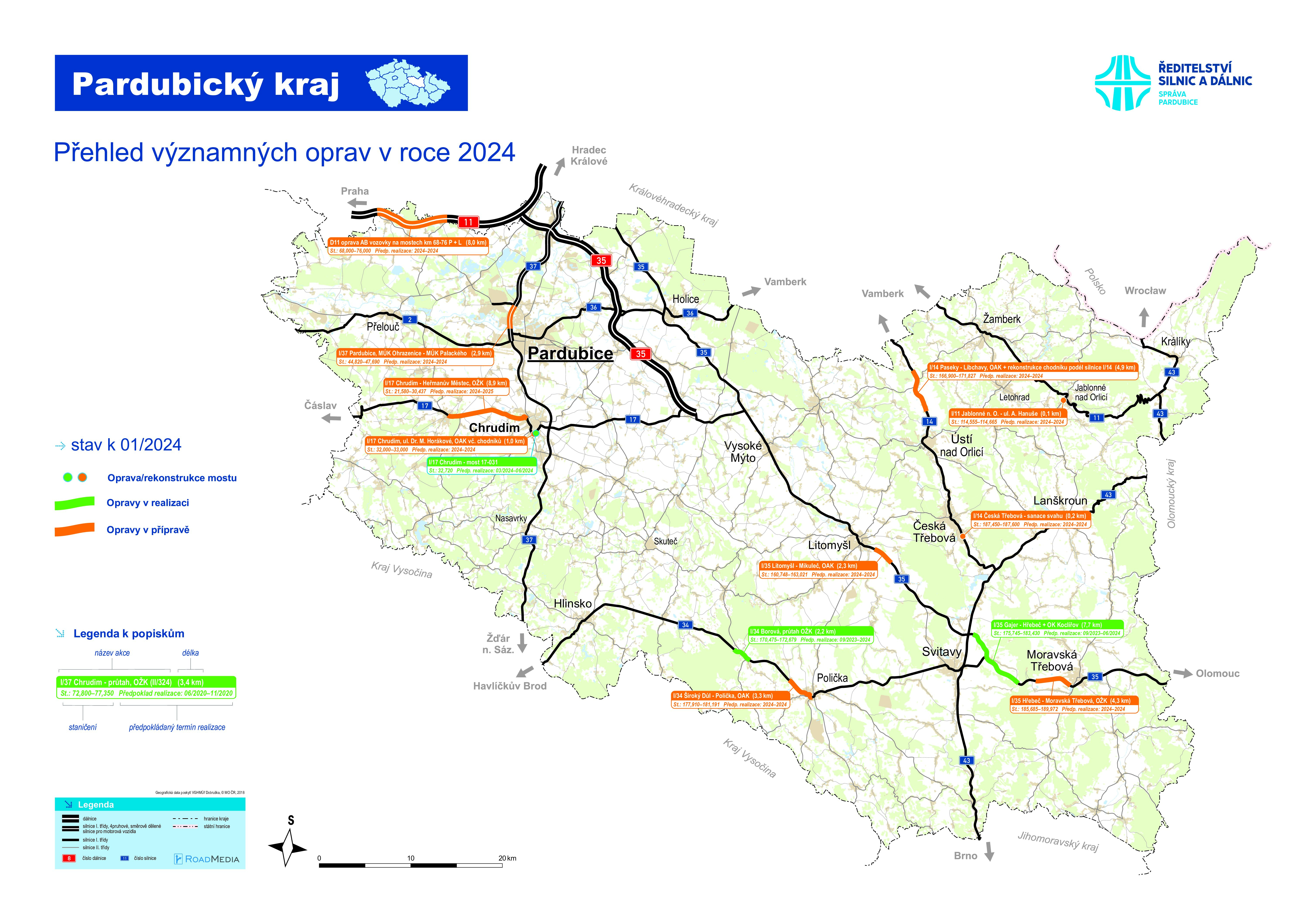 Jaké významné opravy má Správa Pardubice ŘSD v plánu realizovat v roce 2024? Podívejte se na naši nově aktualizovanou mapu.