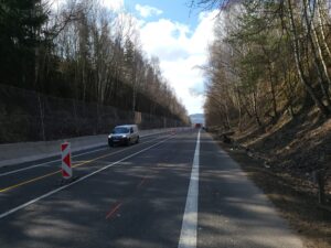 Minulý týden jsme zahájili první práce na sanaci skalního zářezu na silnici I/35 u Linhartic. Máme osazena betonová svodidla a ochranné sítě ve směru na Olomouc. Po osazení v obou směrech zůstanou pojízdné dva pruhy o minimální šířce 3 m. Poté budeme postupně pracovat na kácení, čištění skalního terénu a následně na zajištění svahu. Práce jsou plánované do konce července.