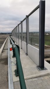 Detail svodidel a protihlukové stěny – nadjezdu I/37 u obce Orel.