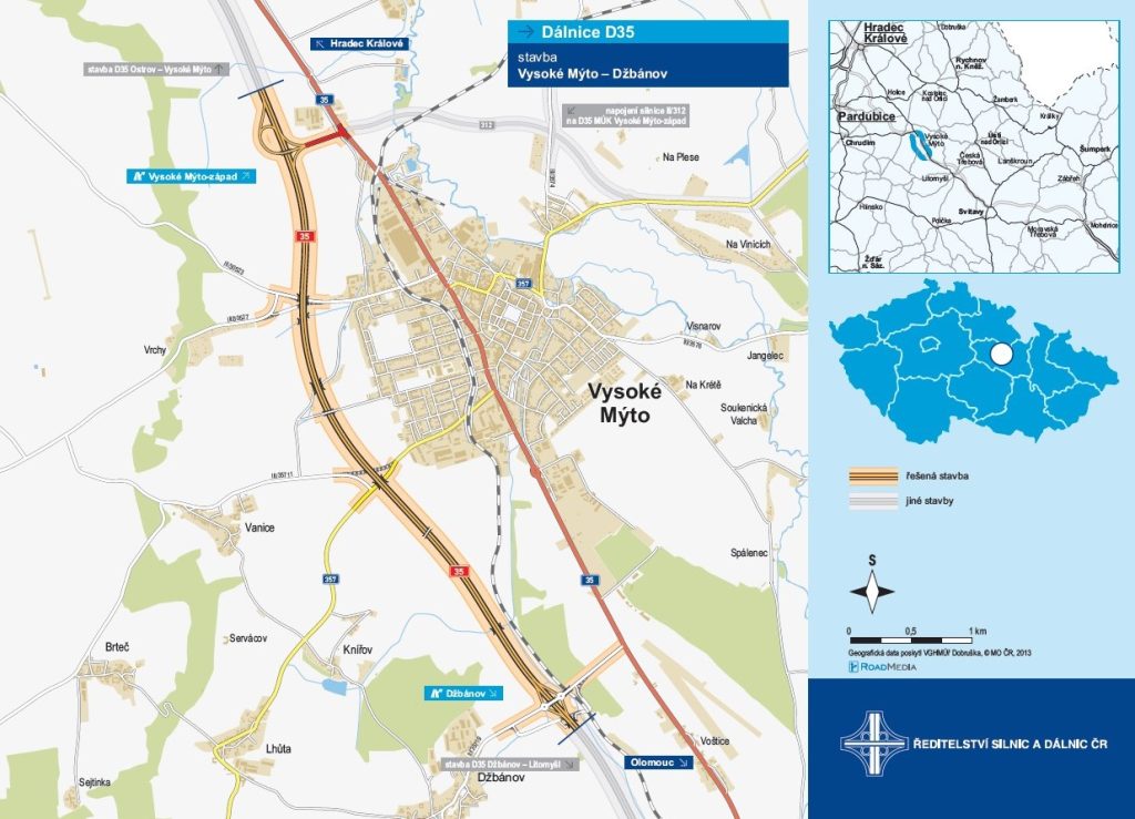 Stavba 6 km úseku D35 „Vysoké Mýto – Džbánov“ je již zanesena v katastru nemovitostí, máme hotovou dokumentaci pro stavební povolení a probíhá inženýrská činnost k získání stavebního povolení. Dále připravujeme podklady k započetí realizace záchranného archeologického průzkum (12 – 18 měsíců), při kterém jsou předpokládány rozsáhlé nálezy.