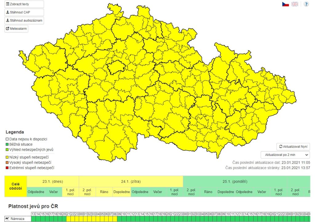‼️ VÝSTRAHA před tvorbou náledí platí od soboty 21:00 do neděle 9:00 na celém území ČR. Střediska zimní údržby zůstávají v pohotovosti. Prosíme řidiče, aby přizpůsobili jízdu aktuálnímu stavu vozovky. pic.twitter.com/DxLctjVkAv