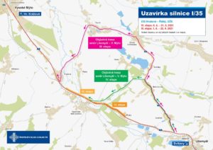 Opravu vozovky sil. I/35 ve 4,5 km dlouhém úseku mezi obcemi Hrušová a Řídký jsme zahájili v úterý 6. dubna. Akce je rozdělena celkem do 4 etap. V termínu od 6. 4. do 31. 5. (III. etapa) bude provoz ve směru z Litomyšle do Vysokého Mýta veden po objízdné trase: I/35 – II/317 Sedliště, Bohuňovice – III/03528. Od 1. 6. do 22. 6. využijí řidiči jedoucí směrem na Vysoké Mýto objízdnou trasu: I/35 – III/03528 Bohuňovice – II/317 České Heřmanice – III/3179 Tisová, Hrušová. Opačný směr bude průjezdný po celou dobu trvání opravy. Celou akci provedeme do konce června letošního roku.