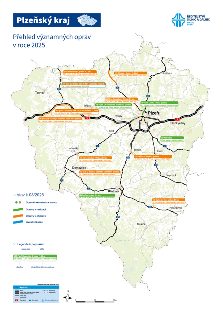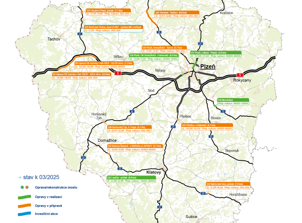 Aktualizovaná mapa oprav plánovaných na rok 2025.