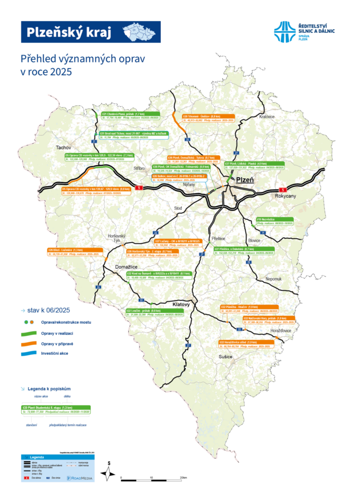 Aktualizovaná mapa oprav plánovaných na rok 2025.