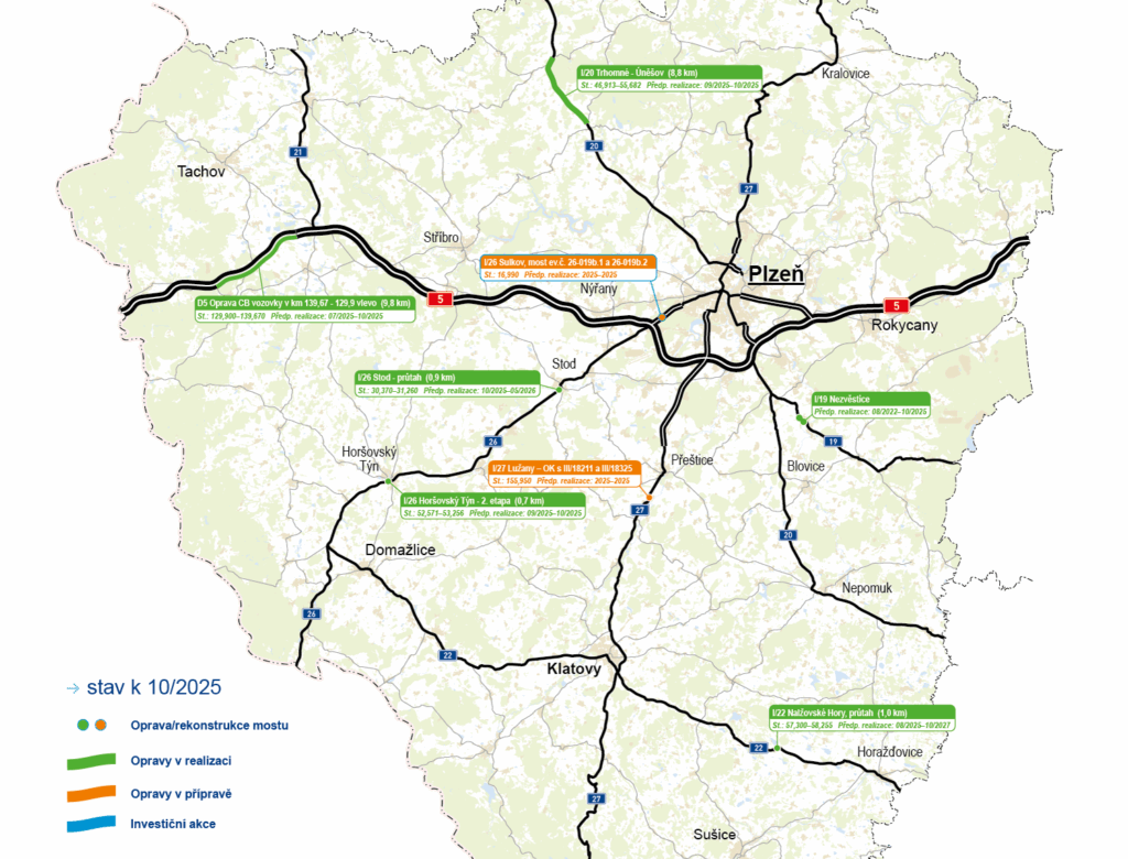 Aktualizovaná mapa oprav plánovaných na rok 2025.