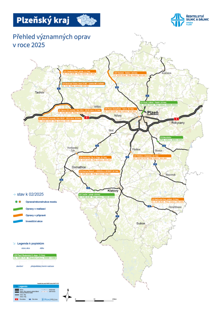 V aktualizované mapě plánovaných oprav zatím ke změnám nedošlo. Až počasí dovolí, urychleně se opět rozběhnou práce na už zahájených projektech. Už nyní víme, že hned začátkem dubna by pak měla být například zahájena přestavba křižovatky u Koutu na Šumavě.
