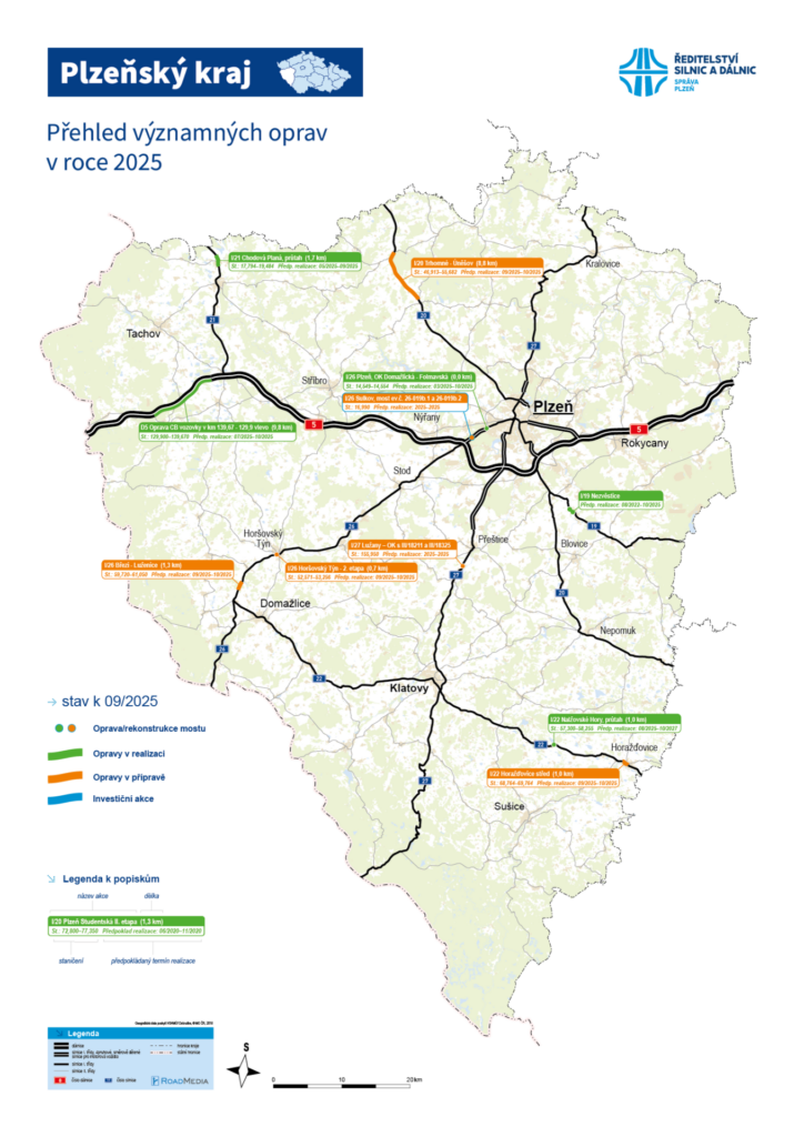 Aktualizovaná mapa oprav plánovaných na rok 2025.