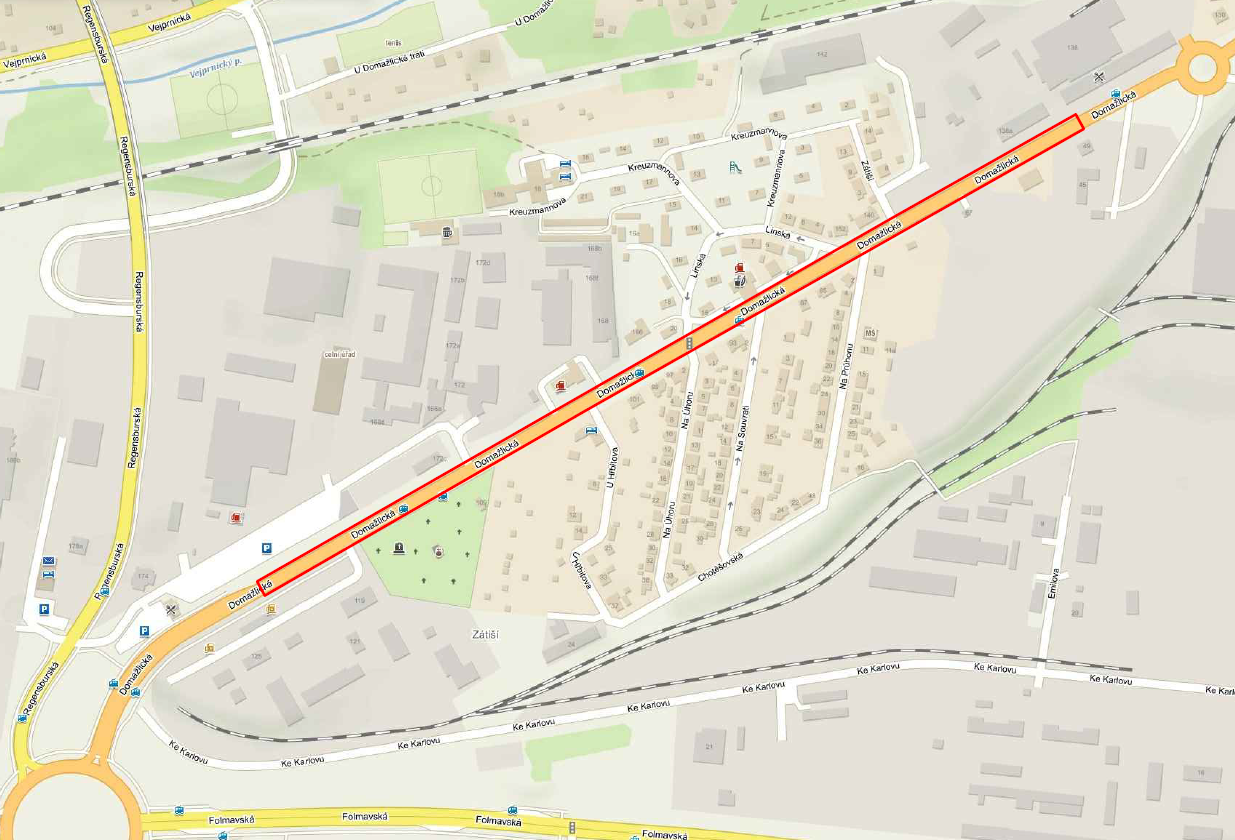 Tento týden zahájíme opravu komunikace I/26 v Plzni v Domažlické ulici. Jedná se o opravu téměř kilometr dlouhého úseku silnice, který začíná před okružní křižovatkou u zastávky Panelárna a končí v místě, kde se komunikace rozšiřuje do čtyřpruhu u Makra.
