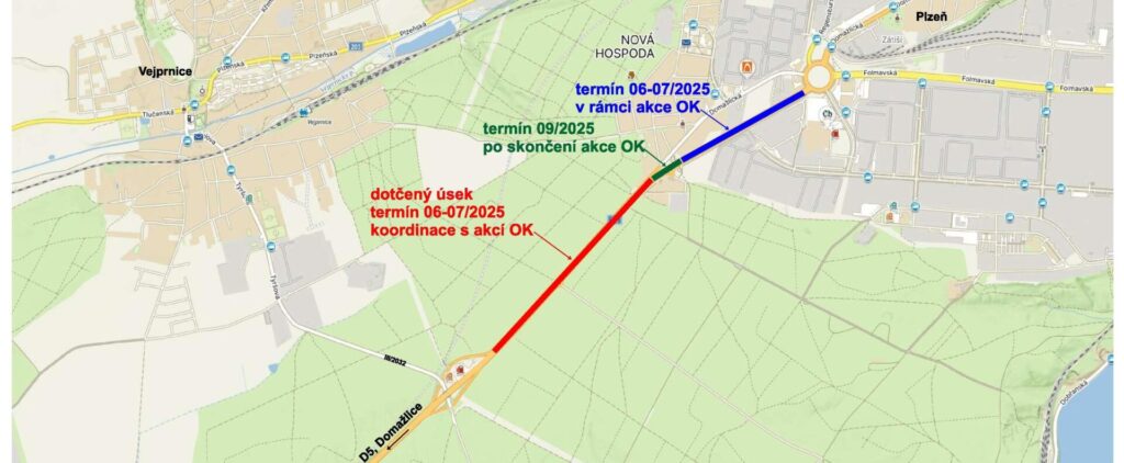 09.06.2025 – 31.07.2025 (bude probíhat v koordinaci se stavbou I/26 OK Domažlická – Folmavská)