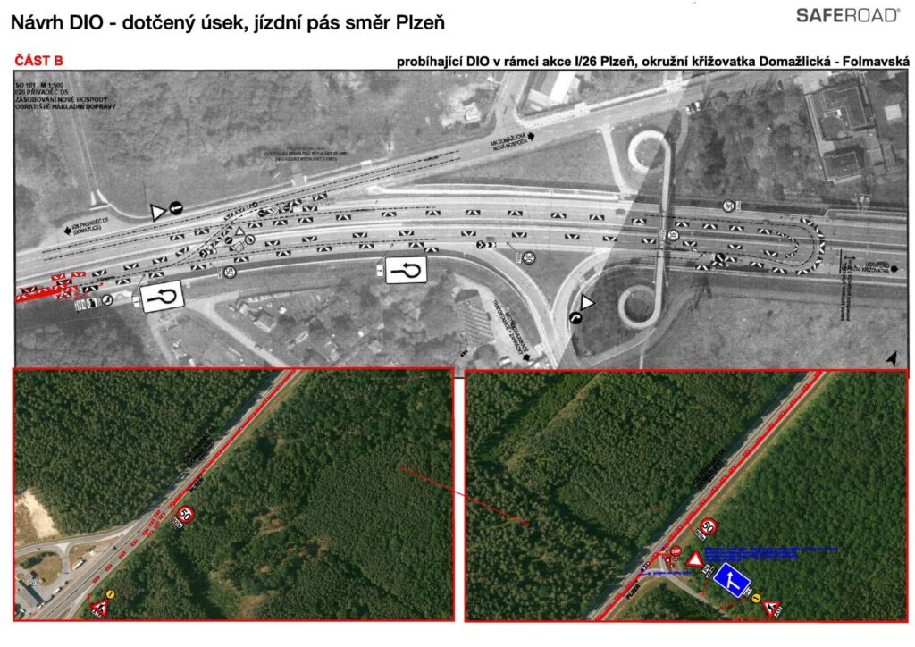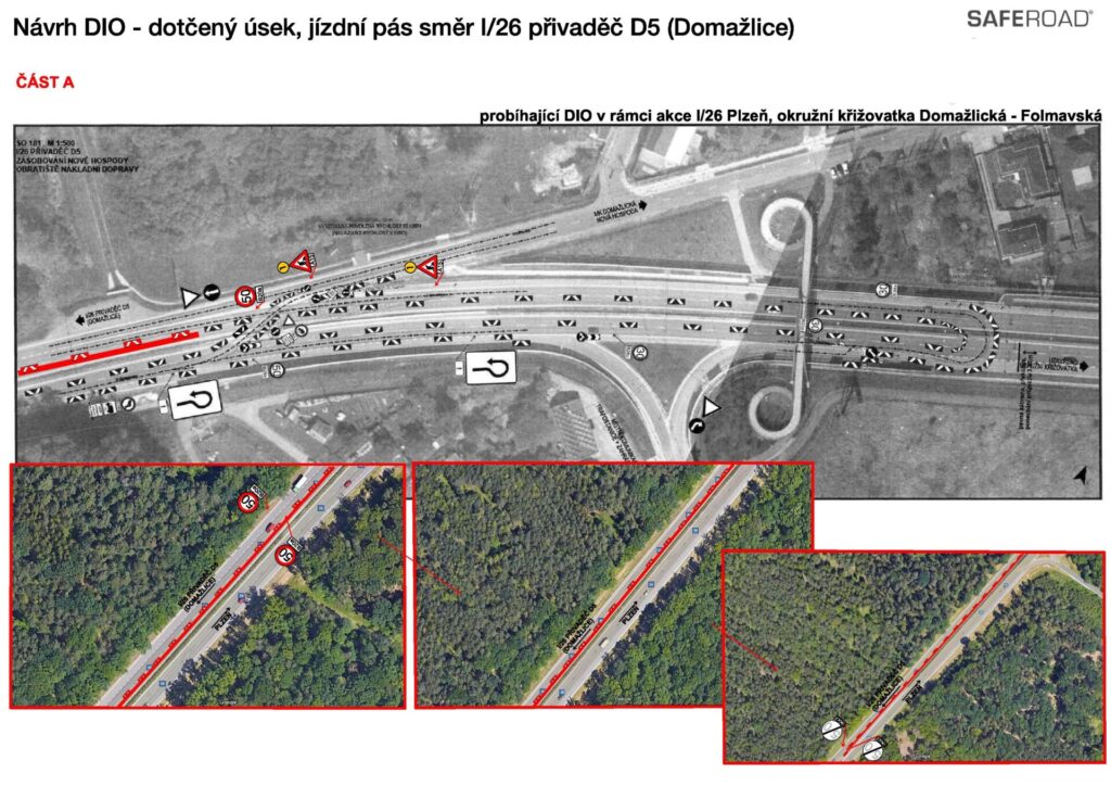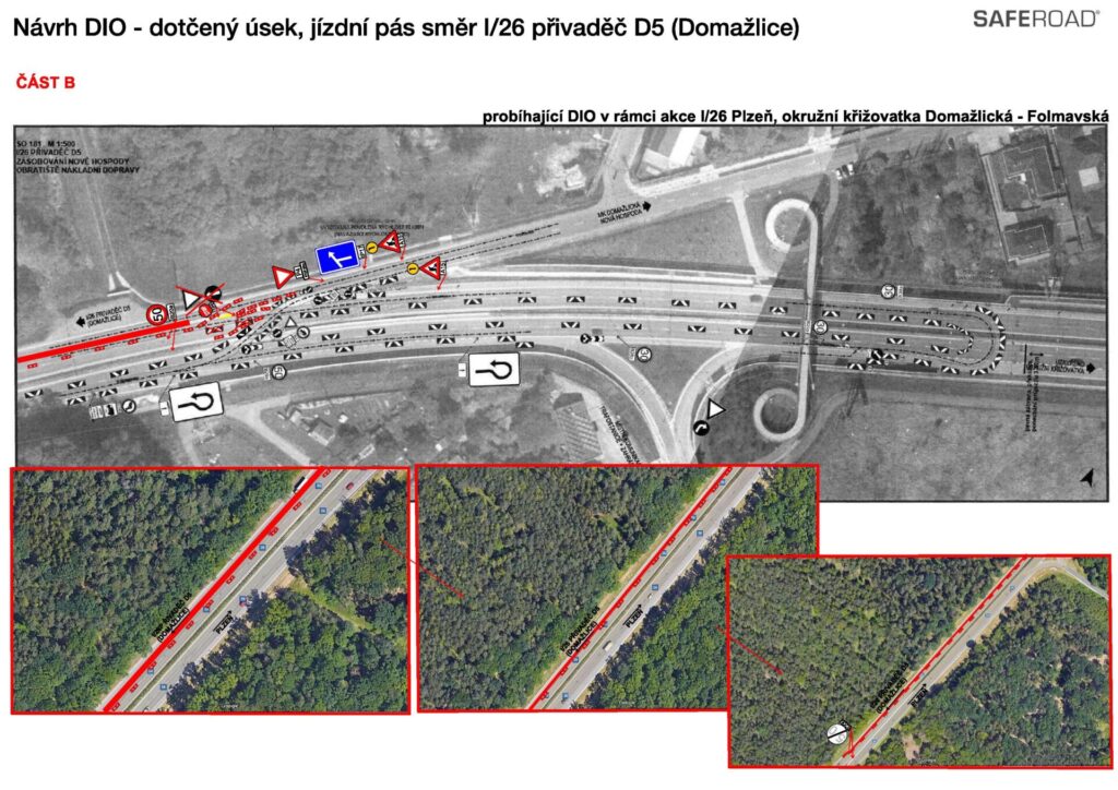 - úsek za přejezdem přes sil. I/26 (akce I/26 OK Domažlická – Folmavská) směrem k D5 k čerpací stanici MOL jízdní pásy v obou směrech