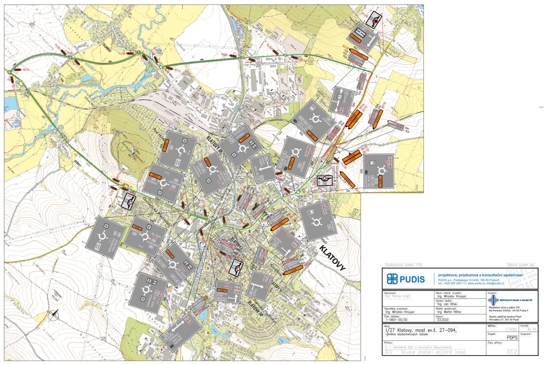 Objízdná trasa vedená obousměrně: od křiž. I/27 (ul. Plzeňská) x II/186 (ul. Štěpánovická) směr Tajanov – po křiž. II/186 x II/185 (ul. Dr. Sedláka) směr Kal – po křiž. II/185 x I/22 směr Beňovy – po křiž. I/22 (ul. Domažlická) x I/27 (ul. Tyršova) v obci Klatovy – po I/27 (ul. Plzeňská) – po křiž. I/27 x II/186(ul. Dobrovského) – po křiž. I/27 x II/191 (ul. K letišti) – po křiž. I/27 x III/11766 směr Točník