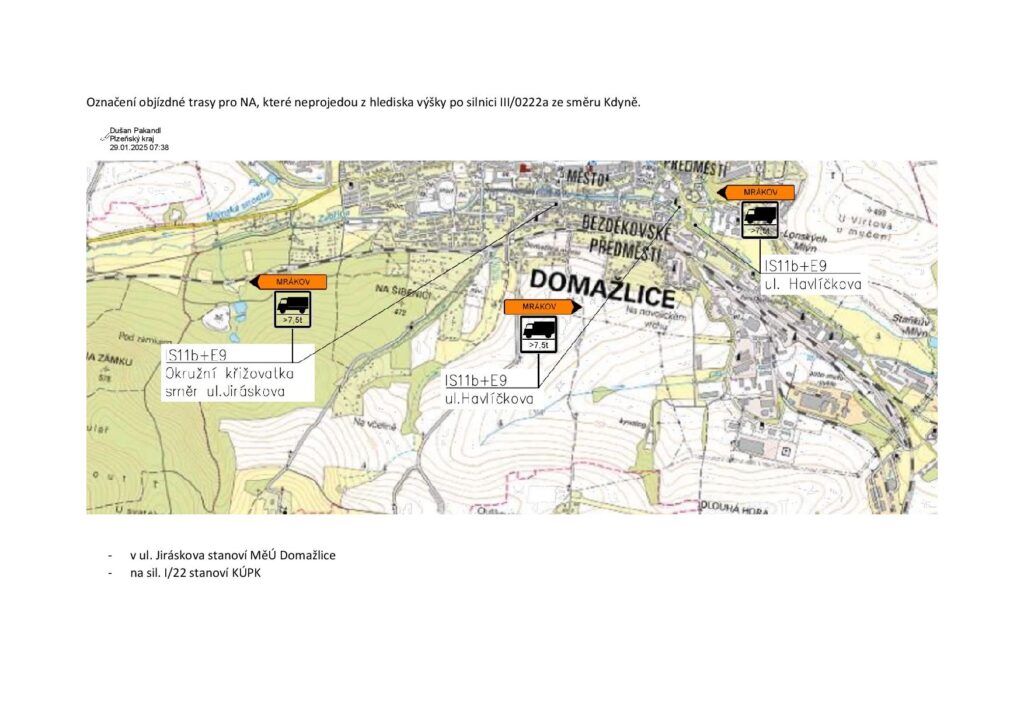 Během stavby bude provoz na hlavním tahu omezen a částečně převeden na objízdné trasy. Silnice I/22 tak bude nadále průjezdná pouze pro vozidla nad 3,5 tuny, které budou stavbou projíždět jedním jízdním pruhem kyvadlově. Pro vozidla do 3,5 tuny bude silnice I/22 zcela uzavřena a řidiči budou muset využít značených objízdných tras.