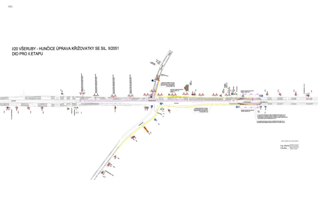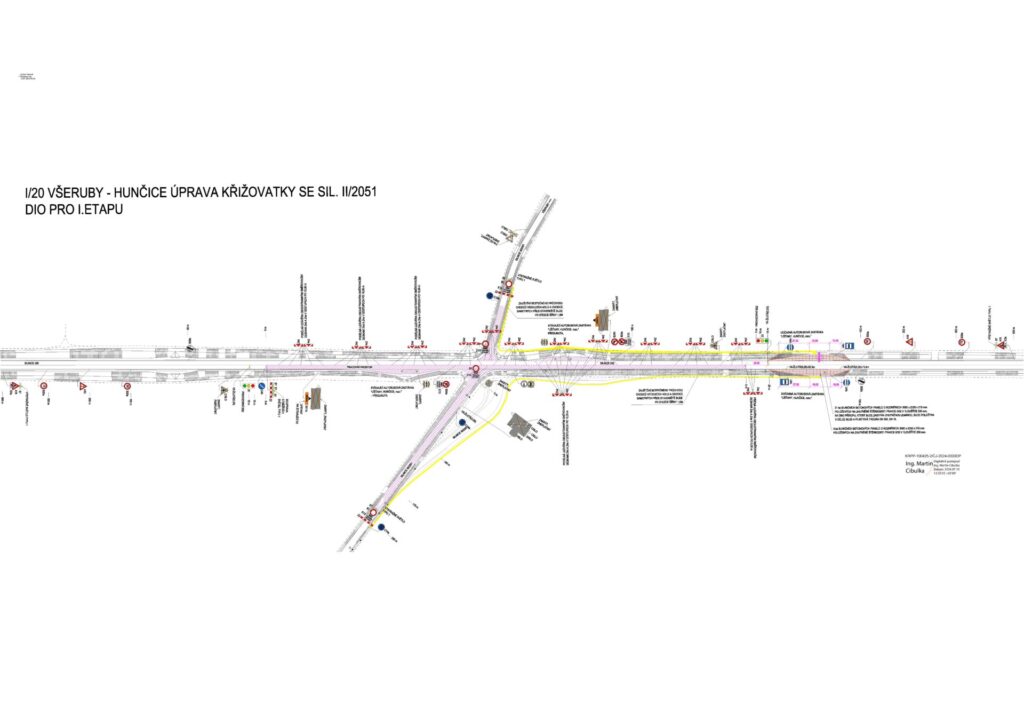 Křižovatka silnice I/20 a III/2051 mezi městem Všeruby a obcí Hunčice na trase Plzeň – Karlovy Vary projde v následujících měsících poměrně výraznými stavebními úpravami. Na hlavním tahu budou v obou směrech vybudovány nové plnohodnotné levé odbočovací pruhy a upraven bude úhel napojení silnice III/2051, a to v obou směrech. Stávající autobusové zastávky budou v obou směrech přeloženy do nové polohy za křižovatkou a budou umístěny do nových zastávkových zálivů. Mezi levé odbočovací pruhy a protisměrné jízdní pruhy budou na obou stranách křižovatky vloženy také dělící dopravní ostrůvky. Ty budou sloužit chodcům jako místa pro překonání komunikace mezi rekonstruovanými autobusovými zastávkami.