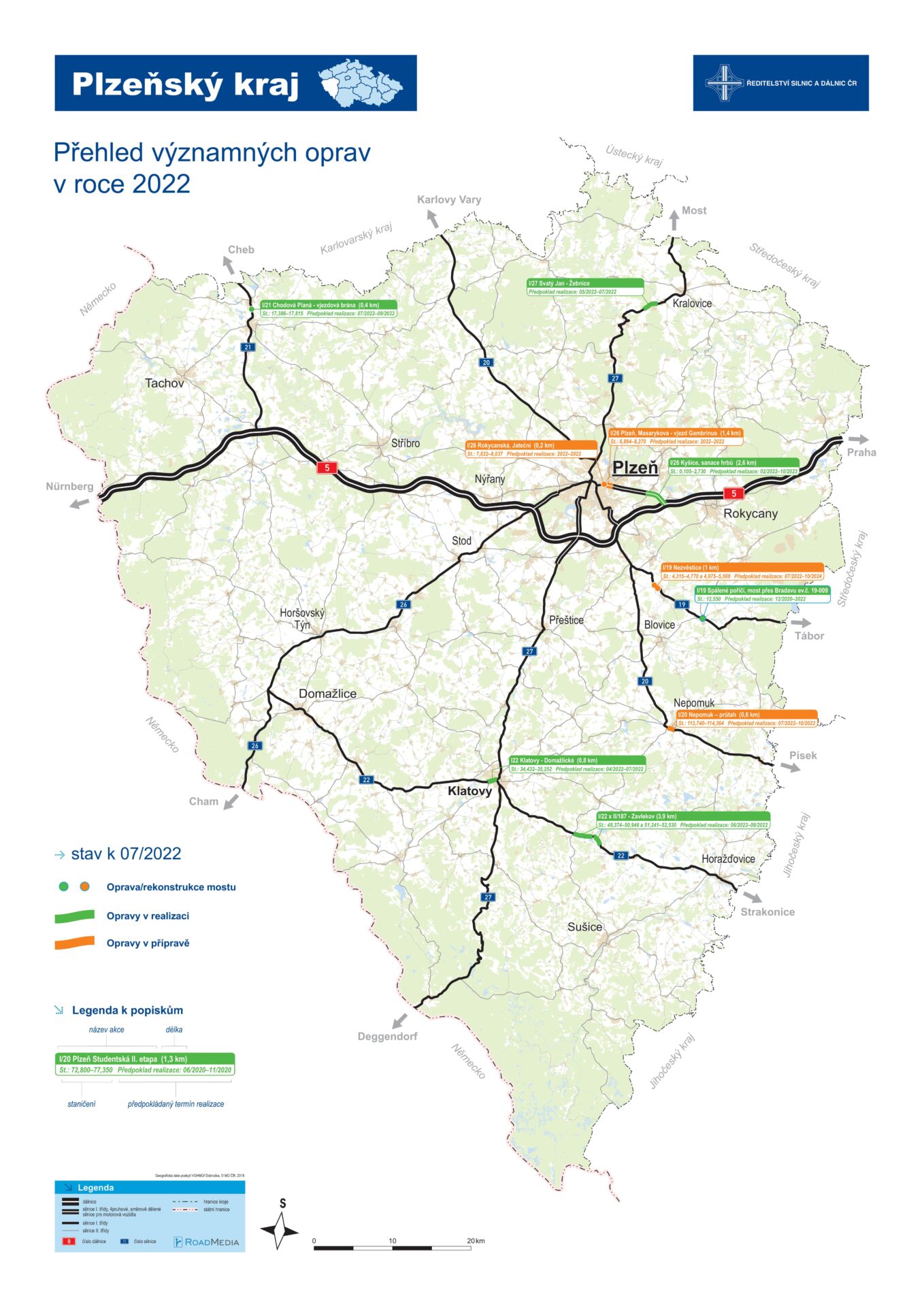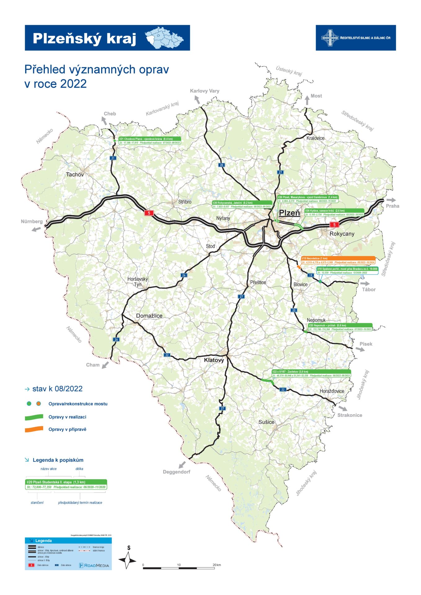 Z letošních významných oprav na území Plzeňského kraje chybí zahájit už pouze akci I/19 Nezvěstice. Zde by se stavební práce měly rozběhnout ještě do konce srpna.