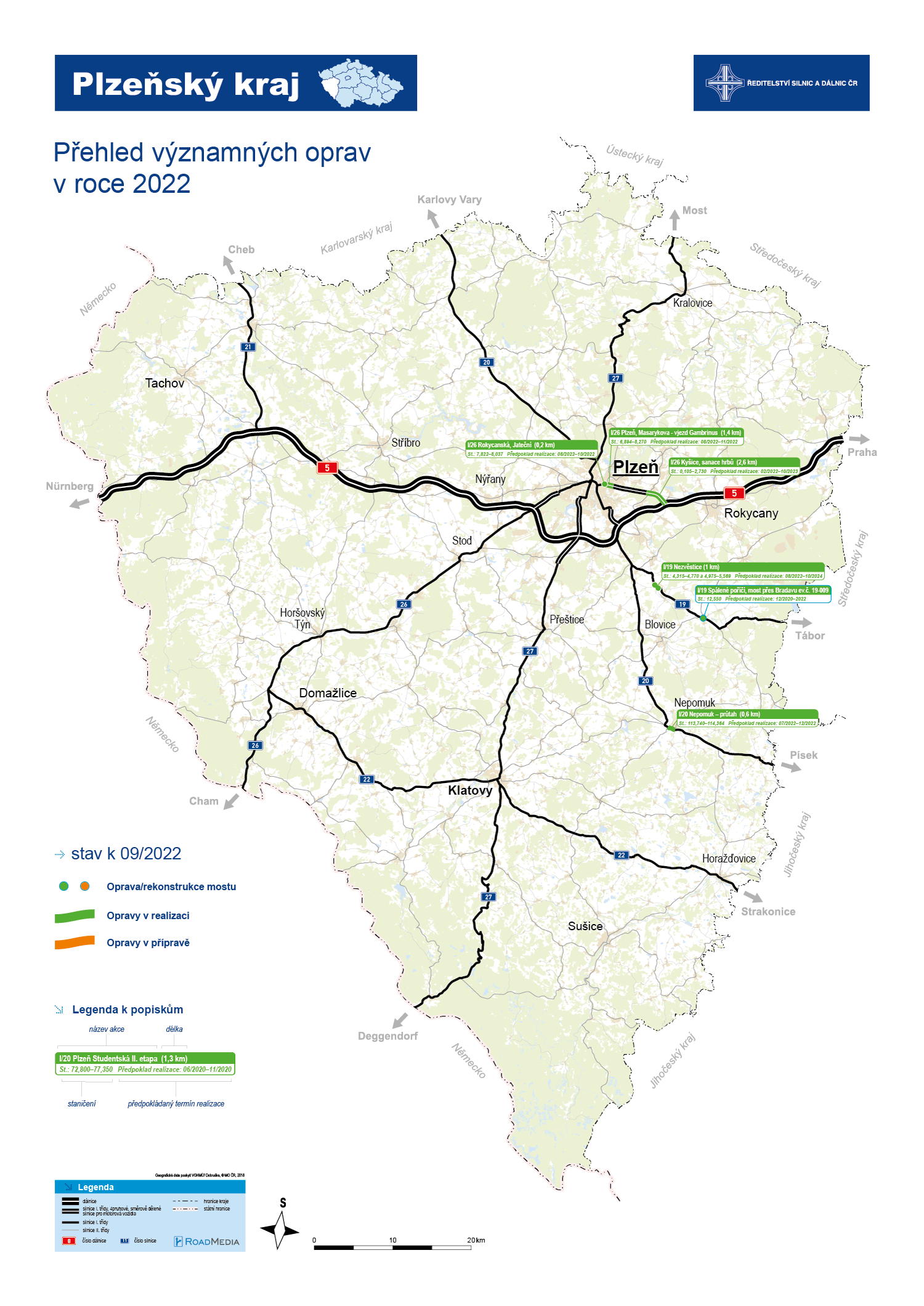 Zde si můžete prohlédnout aktualizovanou mapu právě probíhajících oprav ŘSD ČR v Plzeňském kraji. V rámci akce I/26 Kyšice, sanace hrbů byly práce pro tuto sezónu již ukončeny a znovu se rozběhnou na jaře 2023.