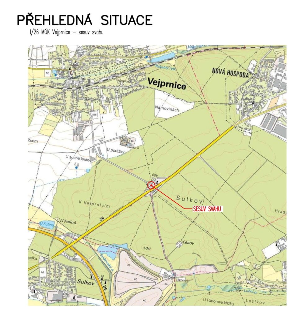 Na sjezdové rampě mimoúrovňové křižovatky Vejprnice na silnici I/26 poblíž čerpací stanice MOL došlo v blízkosti vtoku a výtoku jednoho z propustků k plošným sesuvům zářezových svahů komunikace. Hluboké zářezy v řešeném úseku mohou být nestabilní a například v období zvýšených srážek dochází k sesuvu uvolněné zeminy do prostoru příkopu odvodnění. Sesunutá zemina pak brání odtoku vody a je nutné ji opakovaně odstraňovat. Z toho důvodu zde budou provedeny úpravy odvodnění komunikace, aby do budoucna nedocházelo ke komplikacím, které sesunutá zemina způsobuje.