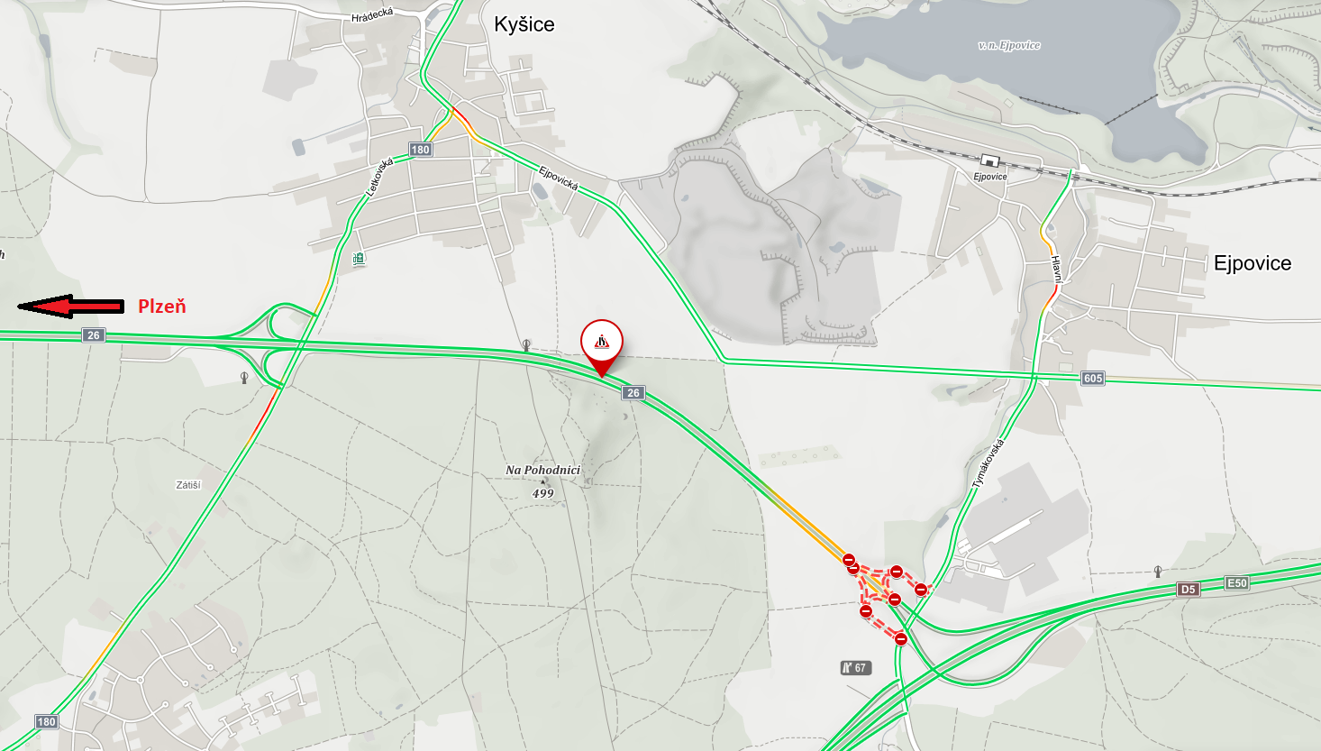 V termínu od 1. 4. do 25. 4. budou nicméně zcela uzavřeny nájezdy a výjezdy MÚK Ejpovice a provoz bude veden po objízdné trase přes Ejpovice a Kyšice.