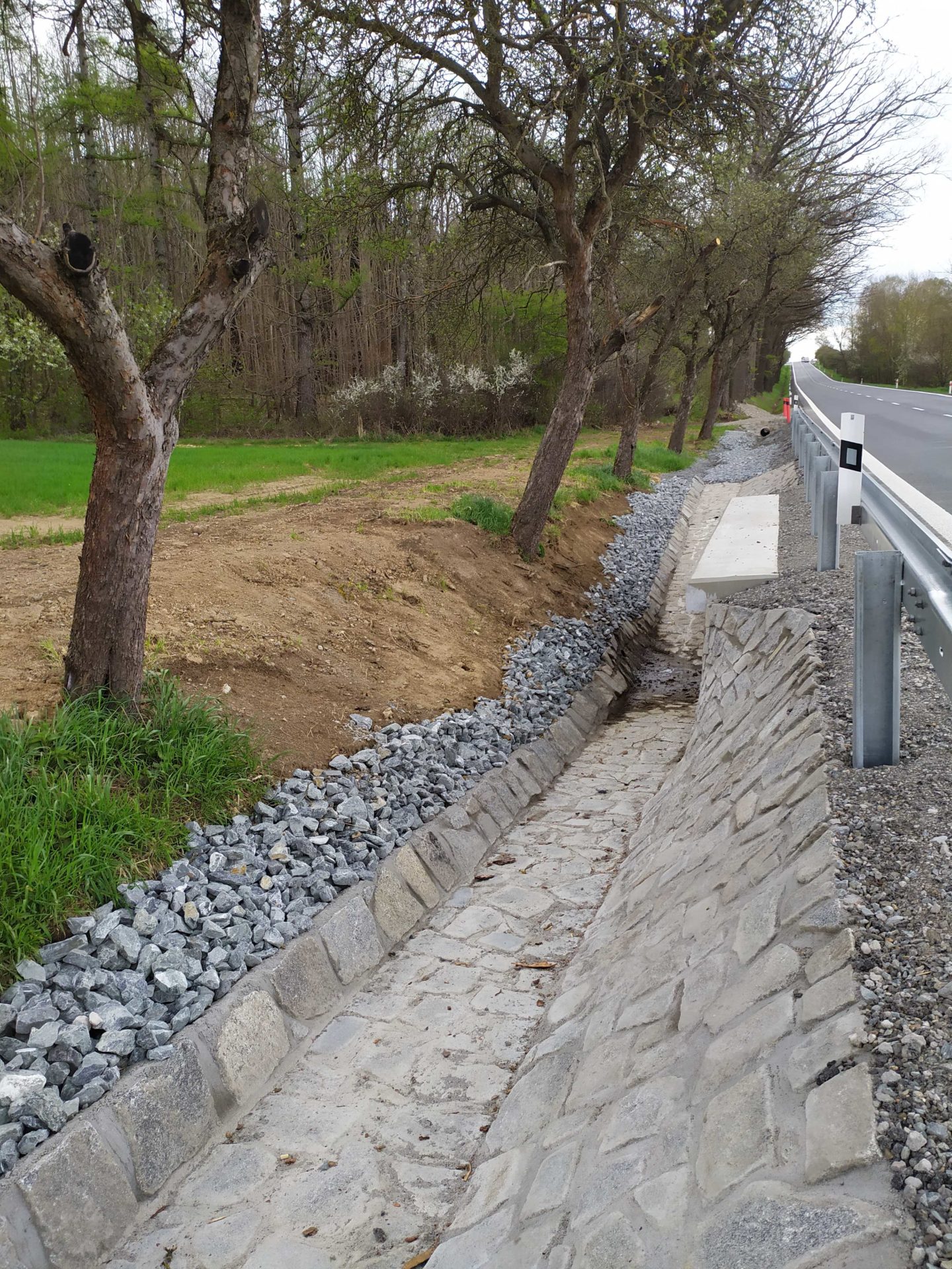 Loni v řešeném úseku probíhala několikaměsíční oprava silnice, která byla z velké části dokončena. Na začátku dubna se na místo dělníci vrátili a pokračovali s menšími stavebními úpravami, jež bylo ještě potřeba dodělat. Prováděli betonáž čela propustku, dokončovali úpravu krajnic a osazovali nová svodidla. Během zhruba měsíc trvajících prací došlo také k pokládce trvalého vodorovného dopravního značení studeným plastem.