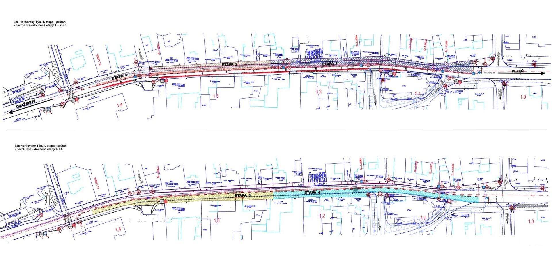 Provoz ve směru Plzeň – Draženov je vždy zachován průjezd stavbou po polovinách