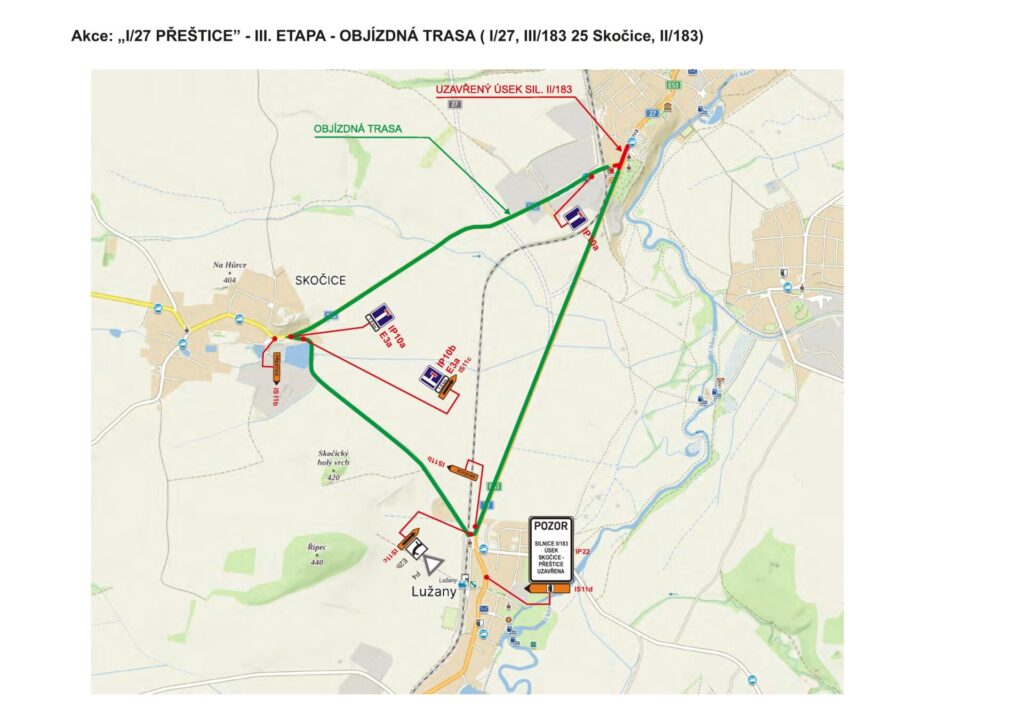 - Během třetí etapy dojde k uzavření křižovatky silnic I/27 a II/183. Řidiči tak budou muset využít navrženou objízdnou trasu po I/27 měr Klatovy a dále po silnici