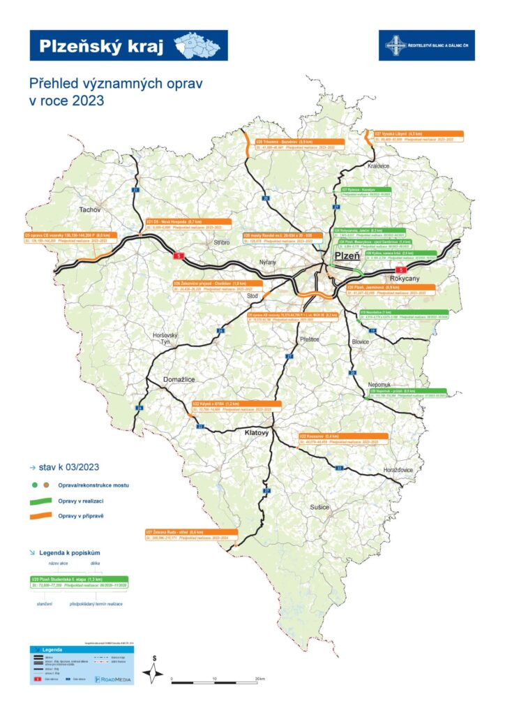 Aktualizovaná mapa oprav plánovaných na letošní stavební sezónu v Plzeňském kraji.