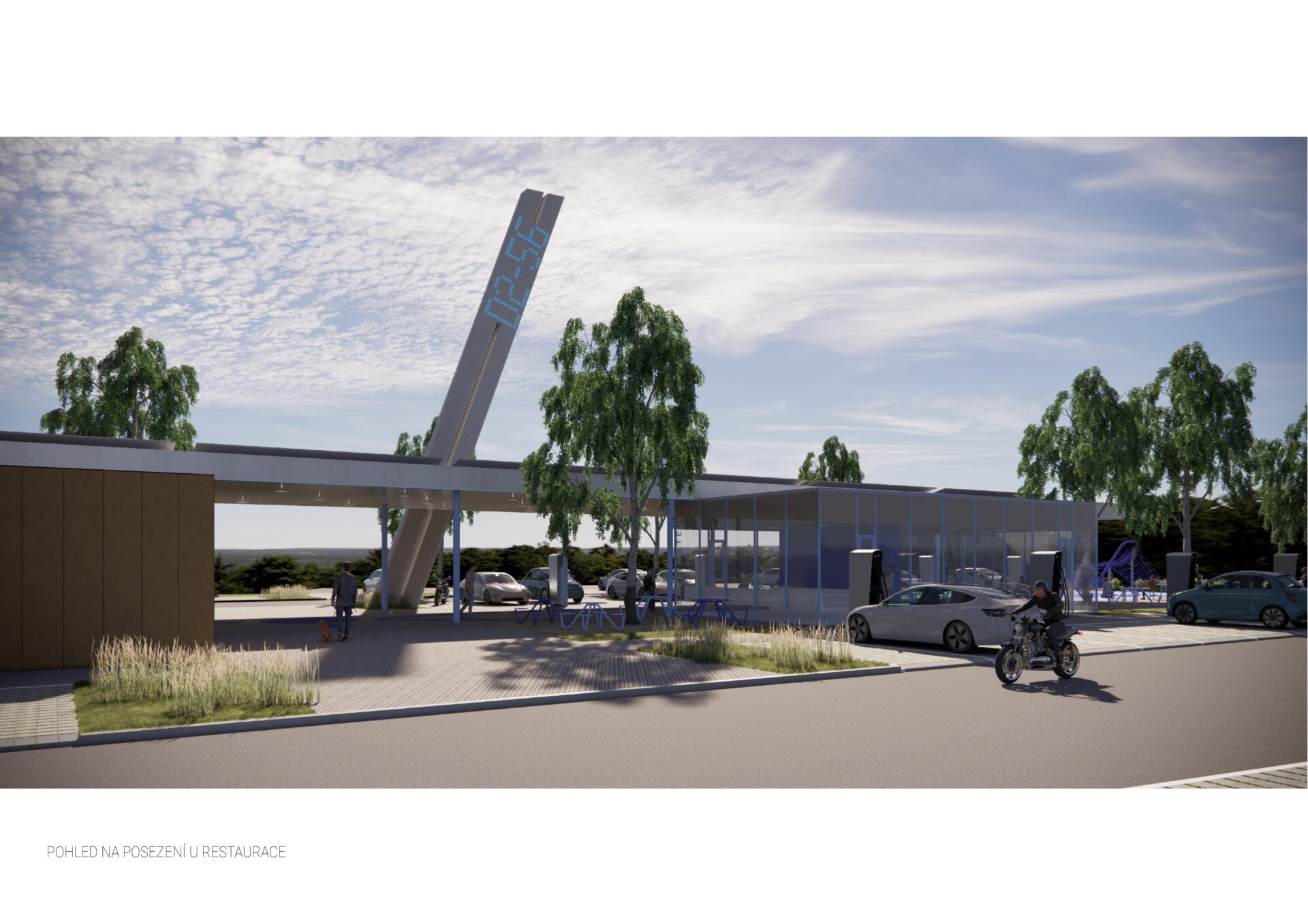 „Půjde o zónu, kde budou moderní WC a sprchy, automaty na dálniční známky a úhradu mýta, nápojové a snack automaty, Wi-Fi nebo dobíjení pro telefony. Stavbu doplní vysoký pylon, který by měl z dálky upoutat pozornost řidičů.“ sdělil Jan Rýdl.
