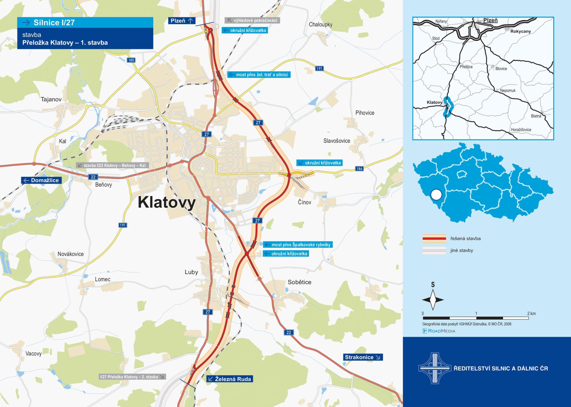 V rámci stavby I/27 Klatovy – přeložka se pak práce týkají objektů: