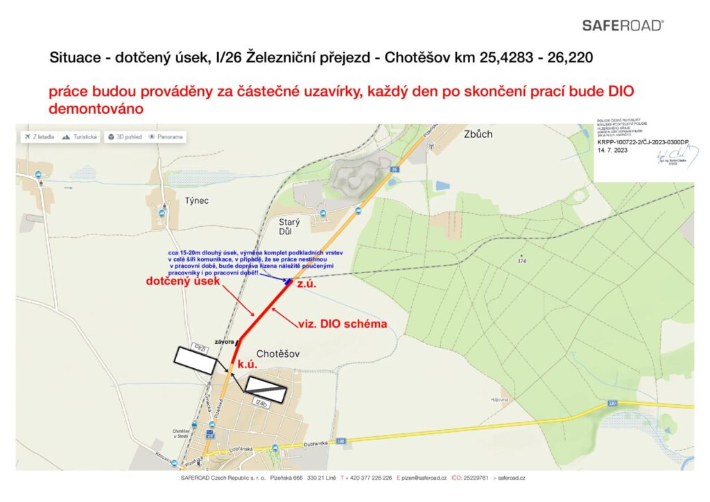 V pondělí byla zahájena oprava silnice I/26 v rámci akce I/26 Železniční přejezd – Chotěšov.