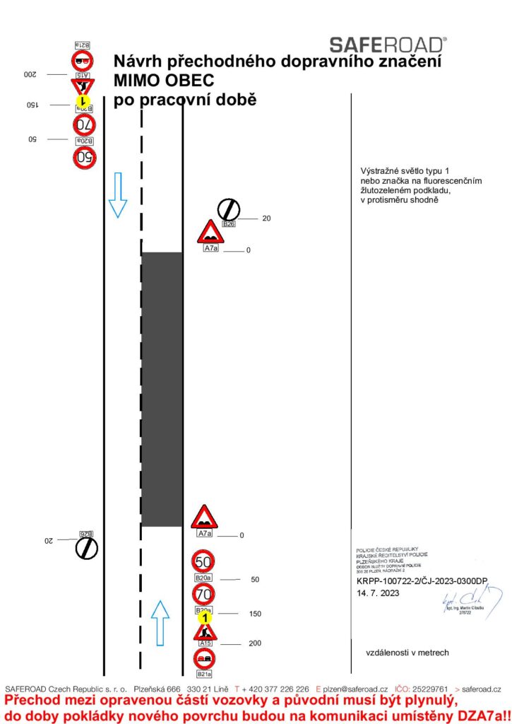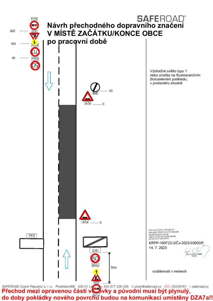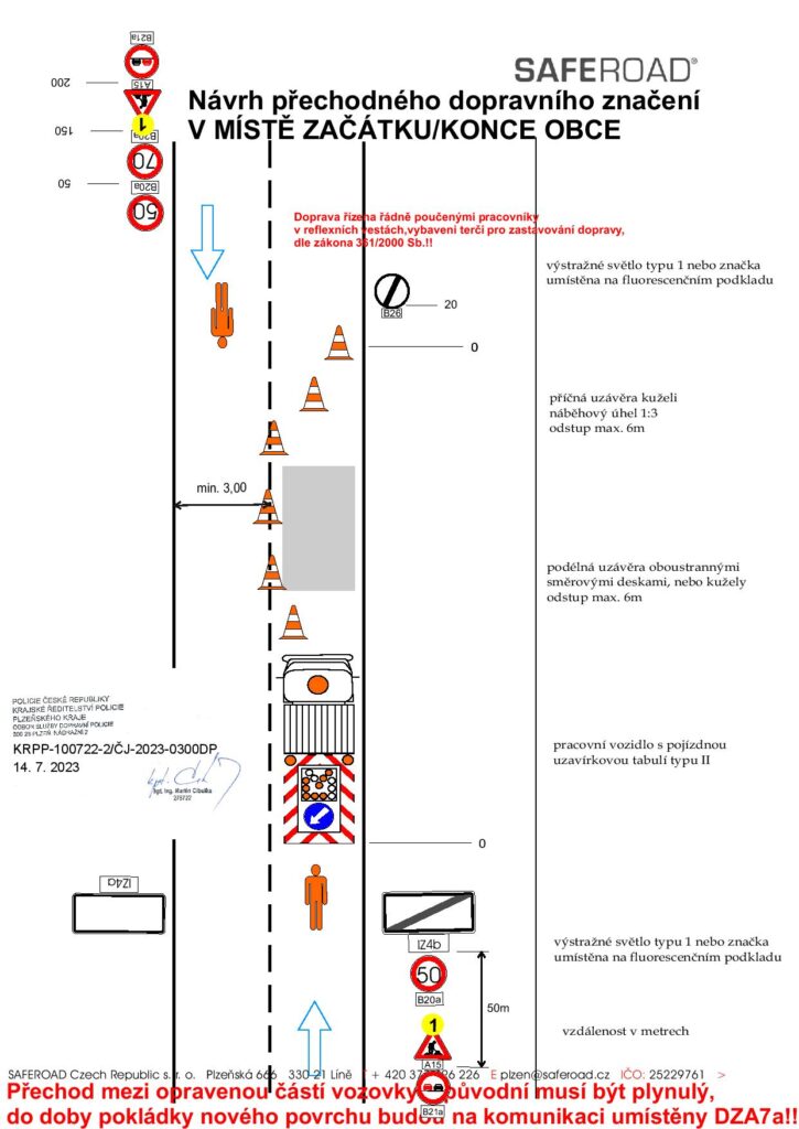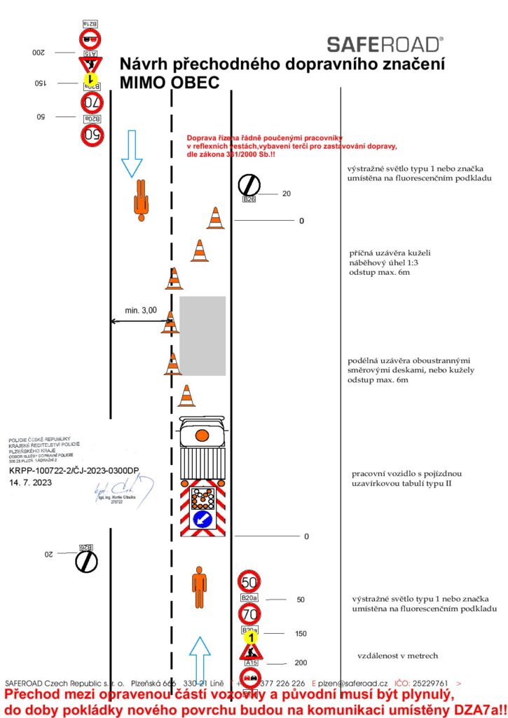 Provoz bude je místě prací veden jedním jízdním pruhem kyvadlově a v průběhu provádění stavebních úprav na vozovce nebude nutné komunikaci zcela uzavírat.
