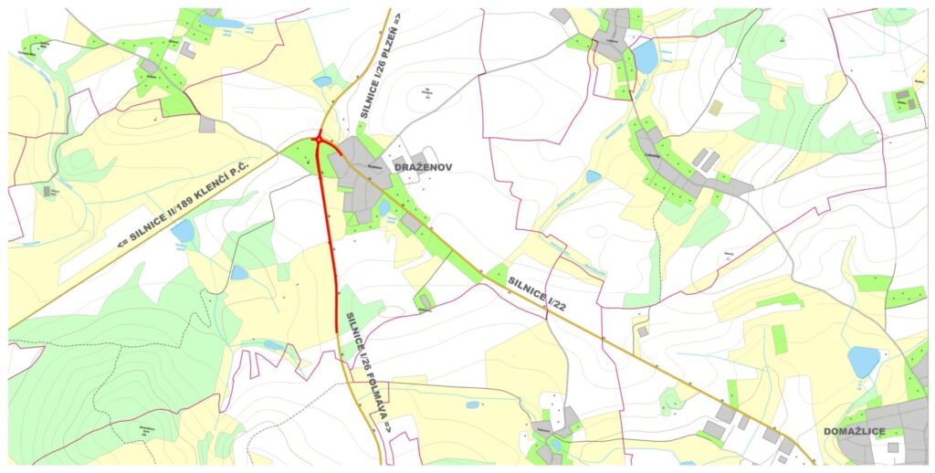 Přesněji půjde o opravu zhruba 1,3 kilometru silnice I/26 ve směru na Folmavu, 200 metrů silnice I/22 až ke značce obce Draženov a 100 metrů silnice II/189 na Klenčí (viz příloha), kde bude odfrézován původní povrch vozovky, vyrovná se příčný profil komunikace a následně budou položeny nové vrstvy vozovky – podkladní, ložní a obrusná. Po odfrézování povrchu bude provedena kontrola stavu konstrukce a případné trhliny či poškozená místa budou sanovány.