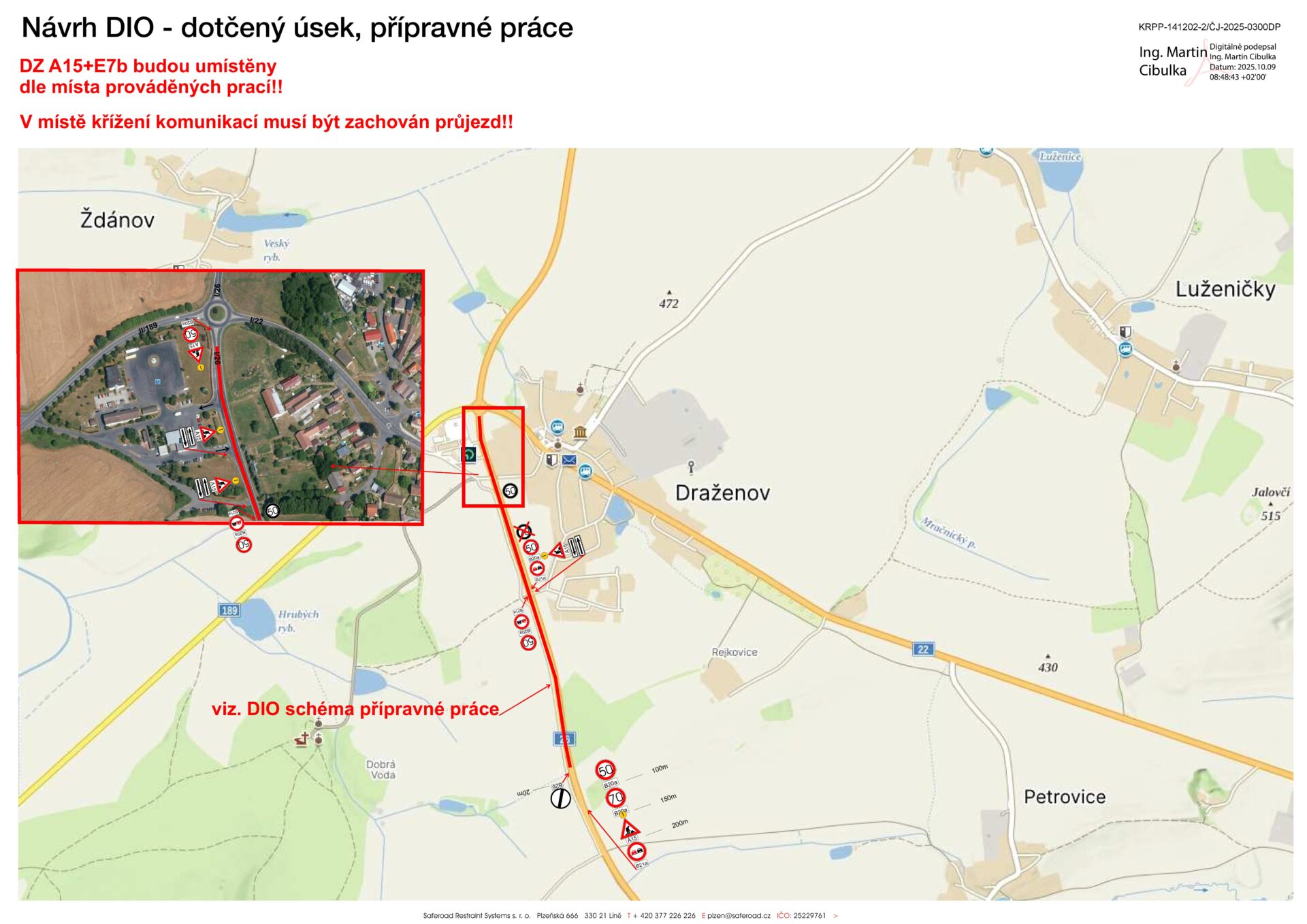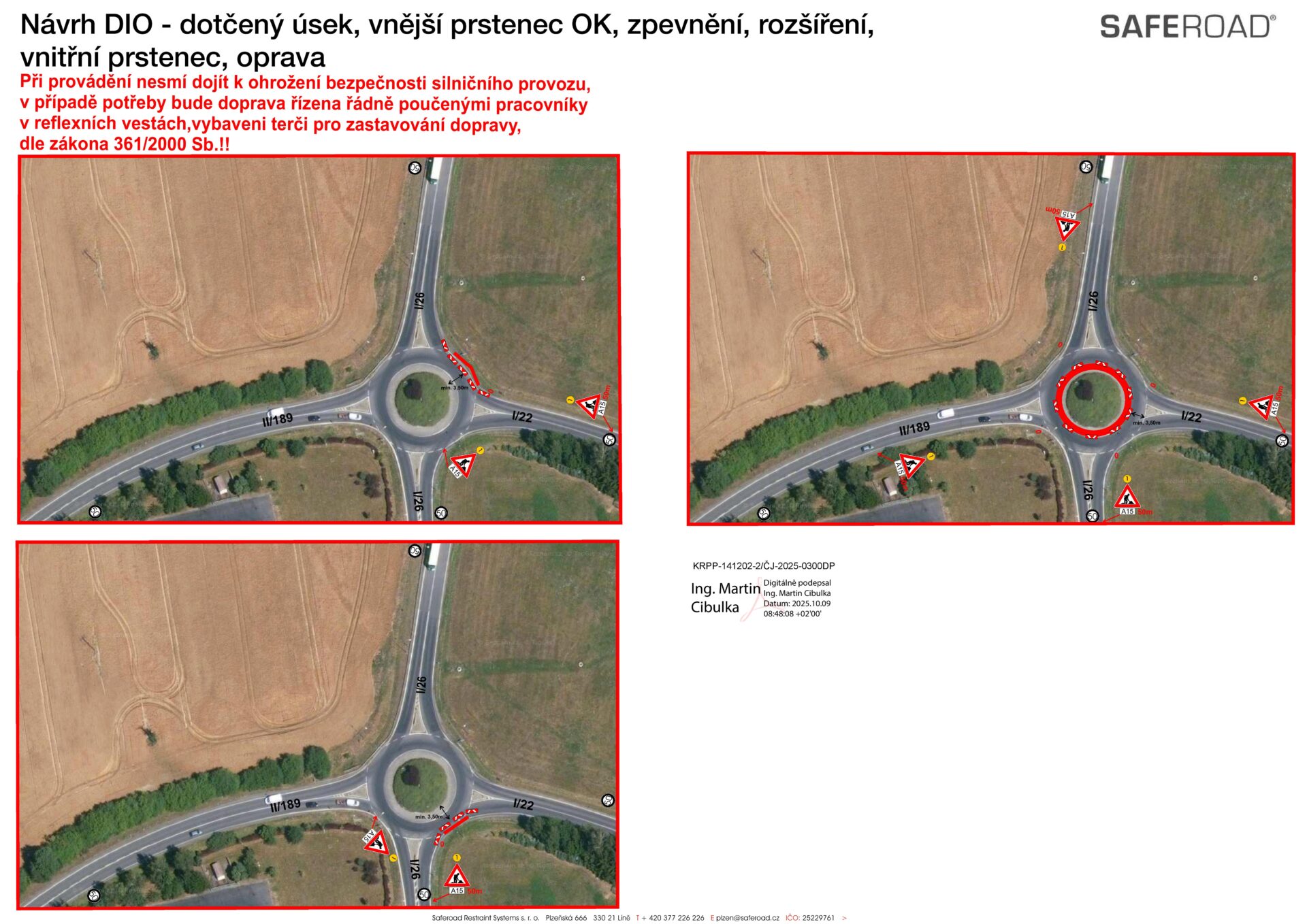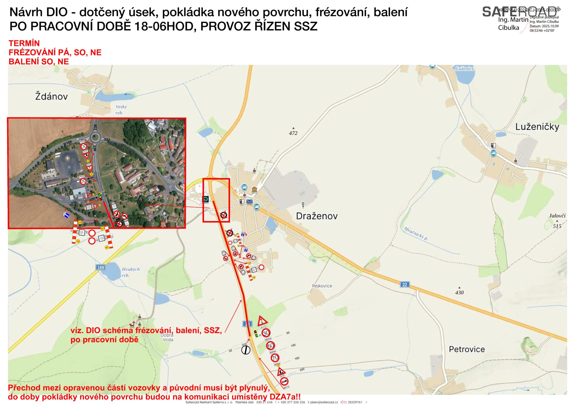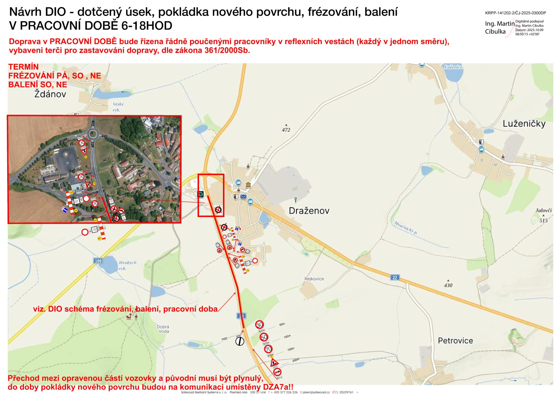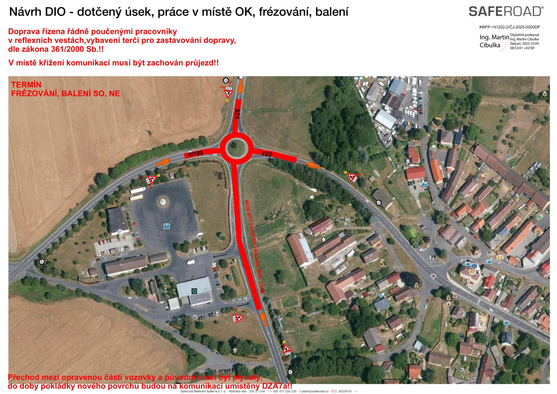V pondělí 27. října začnou práce na opravě povrchu komunikace I/26 a okružní křižovatky silnic I/26, I/22 a II/189 u Draženova.