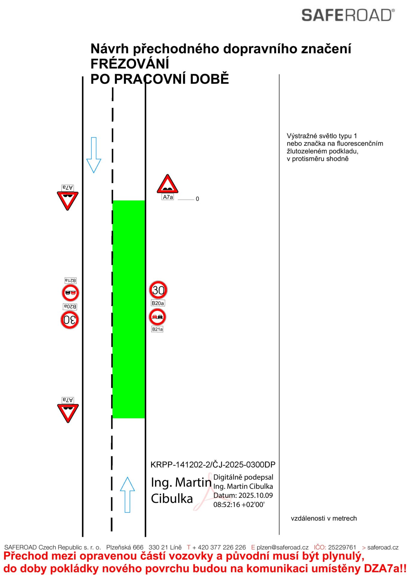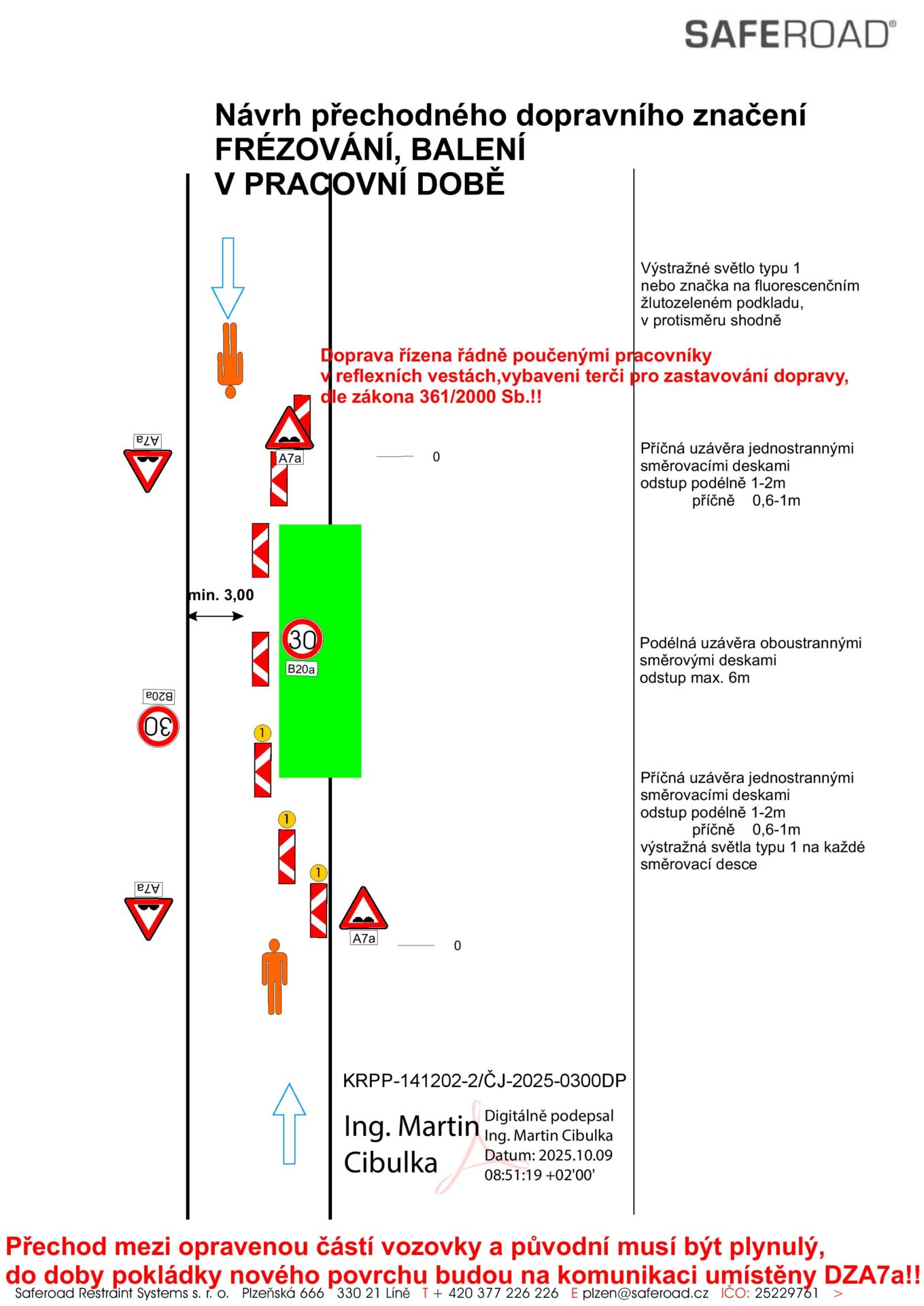 Oprava bude prováděna za částečné uzavírky komunikace a průjezd stavbou by měl být zachován formou kyvadlového provozu.