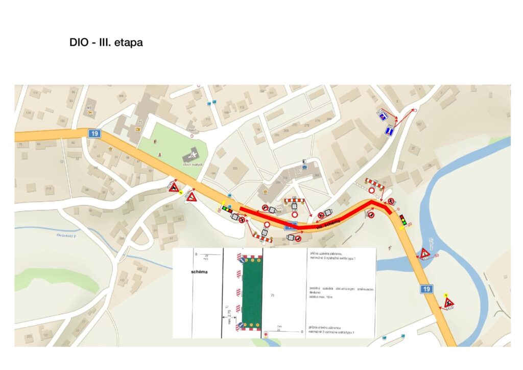 Od pondělí 13.3. by tak mělo dojít k opětovným dopravním omezením v centrální části obce v úseku od mostu přes řeku Úslavu až po autobusovou zastávku. Začnou práce na frézování povrchu vozovky a následné opravě kanalizace a opěrné zídky. Stejně jako v minulém roce budou stavební úpravy prováděny po polovinách a provoz bude veden jedním jízdním pruhem kyvadlově.