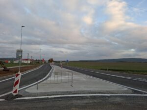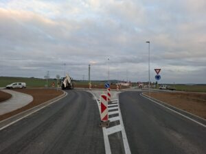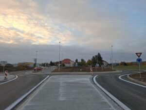 Na příjezdu do obce ve směru od Plzně už finišují práce na výstavbě nové okružní křižovatky. Provoz už je v místě stavby veden oběma směry bez větších komplikací.