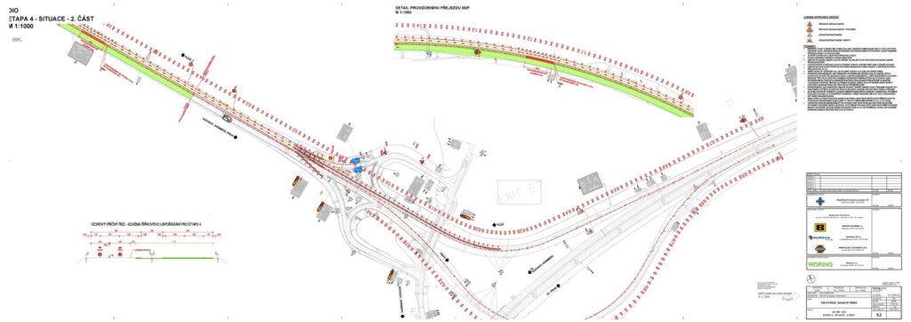 Zde pro Ředitelství silnic a dálnic provádí stavební úpravy společenství firem BERGER BOHEMIA a.s., EUROVIA CS a.s. a SWITELSKY stavební s.r.o., které uspělo ve výběrovém řízení na realizaci stavby s cenou ve výši 237 mil. Kč. bez DPH.