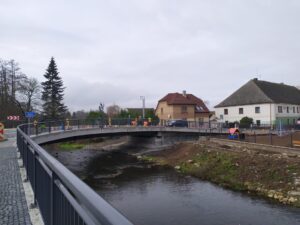 Původní most byl i s lávkou pro pěší zdemolován. Na jeho místě pak došlo k vybudování nového mostu a současně proběhla i úprava nábřežních zdí. Důvodem pro stavbu nového mostu bylo už nevyhovující prostorové uspořádání původního mostu. To způsobovalo značné dopravní komplikace, kdy jeho šířka neumožňovala například míjení dvou autobusů nebo nákladních vozidel. Po úplném dokončení stavebních úprav, které v rámci této akce probíhají by pak měl být tento problém vyřešen.