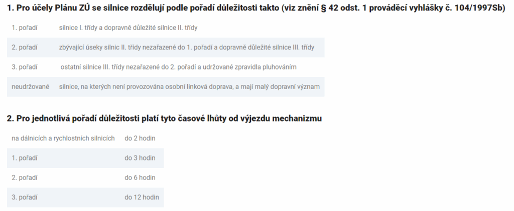 Informace o zimní výbavě, sjízdnosti silnic a dálnic, ale také informace zahrnující výkony zimní údržby na dálnicích a silnicích I. třídy naleznete na portálu https://dopravniinfo.cz/