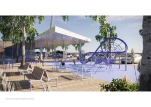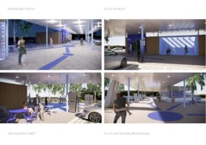Součástí stavby pak bude i mobiliář zahrnující například dětské hřiště, odpočinkové zóny, zastřešená posezení nebo korporátní toalety. V odpočinkových zónách ale i v ostrůvcích mezi stáními budou vysázeny stromy. Celý areál odpočívky bude oplocen, vybaven moderním LED osvětlením a systémem pro sledování obsazenosti, jehož součástí bude i telematický systém určený k rozřazování nákladních vozidel do jednotlivých řad a mezi jednotlivé odpočívky. Stavbu pak doplní vysoký pylon, který by měl z dálky upoutat pozornost řidičů.