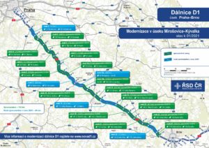V této uvedené části začne v pátek dopoledne postupná stavba dopravně inženýrského opatření. V rámci jeho výstavby budou uzavírány rychlé jízdní pruhy, aby bylo možné provádět práce ve středním dělicím pásu. Zde je nutné provést napojení kanalizace a telematiky mezi modernizovanými úseky č.11 a č.12. Současně budou probíhat opravy výtluků v pravém jízdním pásu ve směru na Brno mezi km 83 – 91,3.