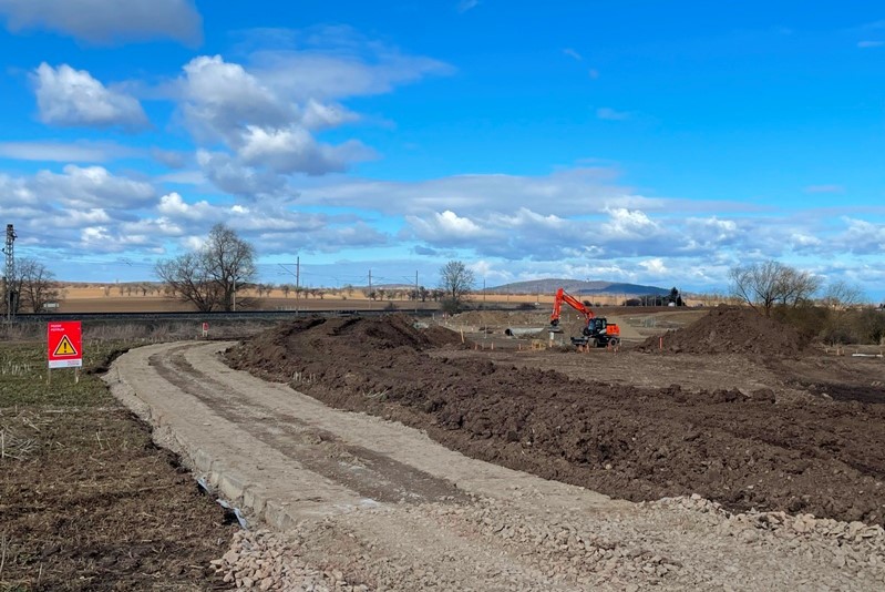 Od listopadu loňského roku do konce ledna 2021 se prováděly hlavně přípravné práce jako vytyčení a zaměření stávajících sítí skrývky ornice a práce na realizačních dokumentacích stavby. Od února 2021 probíhalo hlubinné zakládání mostu přes potok Křenovka a Klejnarka a skrývky podorničních vrstev v místech přeložek inženýrských sítí a v místech mostů. Součástí těchto skrývek je také označení archeologicky hodnotných lokalit, na kterých bude následně prováděn archeologický výzkum.