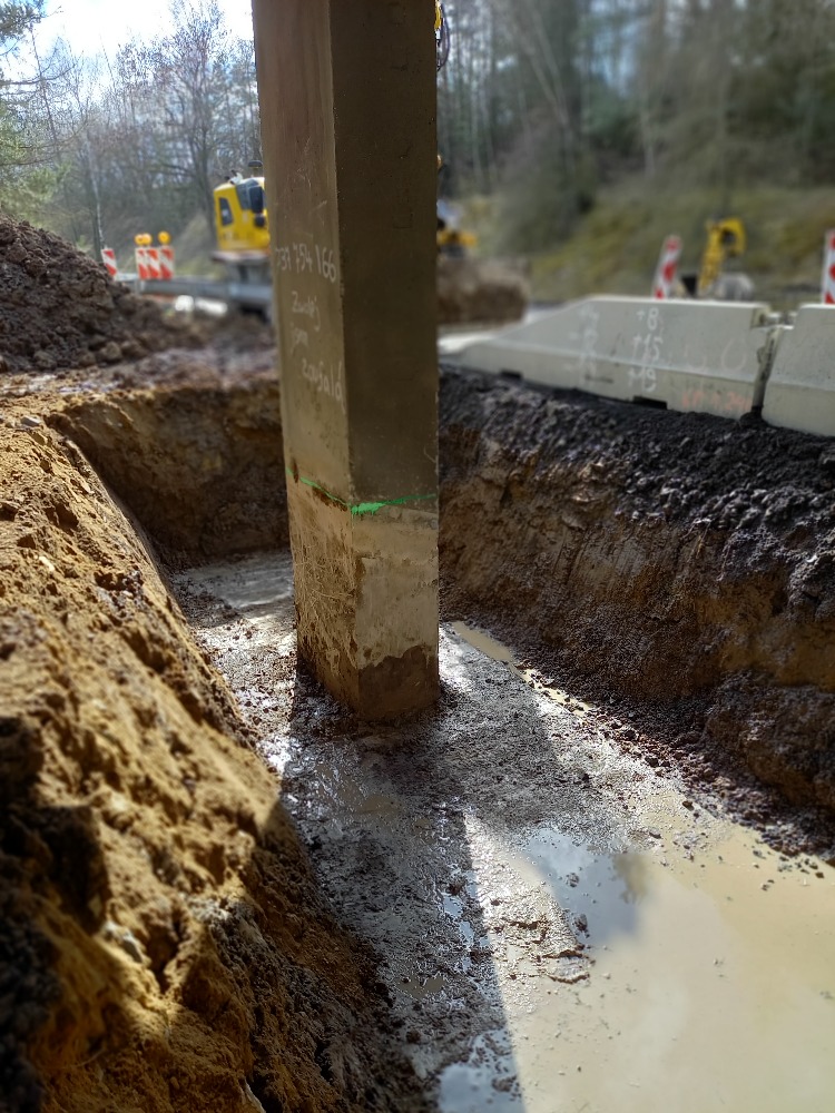 Provádí se výkop nad úložnými prahy pilířů, který se vyplní betonovým prahem. Na ten se osadí členěné ocelové stojky požadované údržnosti. Prostor mezi stojkami a stativem bude vyklínován dubovými trámky a gumovou podložkou. Pomocí lisů budou stojky aktivovány. Svahy pod mostem budou upraveny do sklonu cca 1:1.5. Bude obnoven žlab z betonových žlabovek a zpět namontováno ocelové svodidlo.