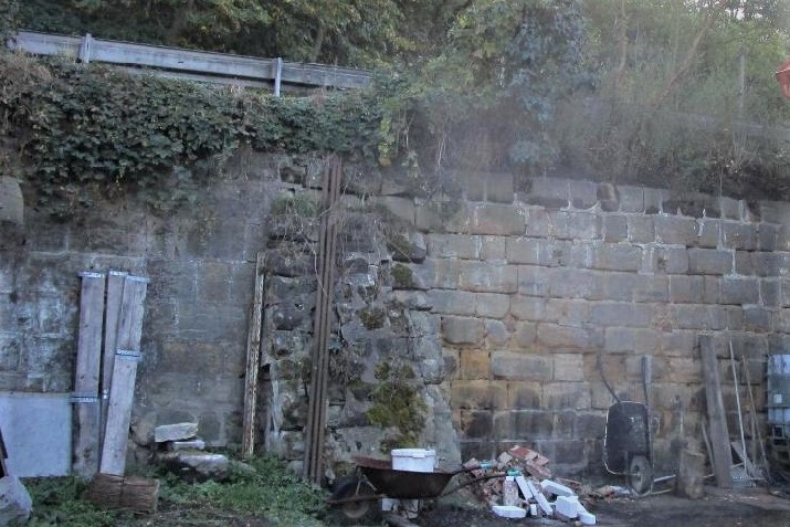 Zeď v délce 40 metrů se nachází při levém okraji silnice ve směru jízdy na Č. Lípu. Vlivem souběhu působení klimatických jevů a těžké dopravy jsme zaznamenali nestabilitu konstrukce vozovky a to zejména v důsledku výrazného poškození pískovcových kvádrů, z nichž je větší část opěrné zdi postavena.