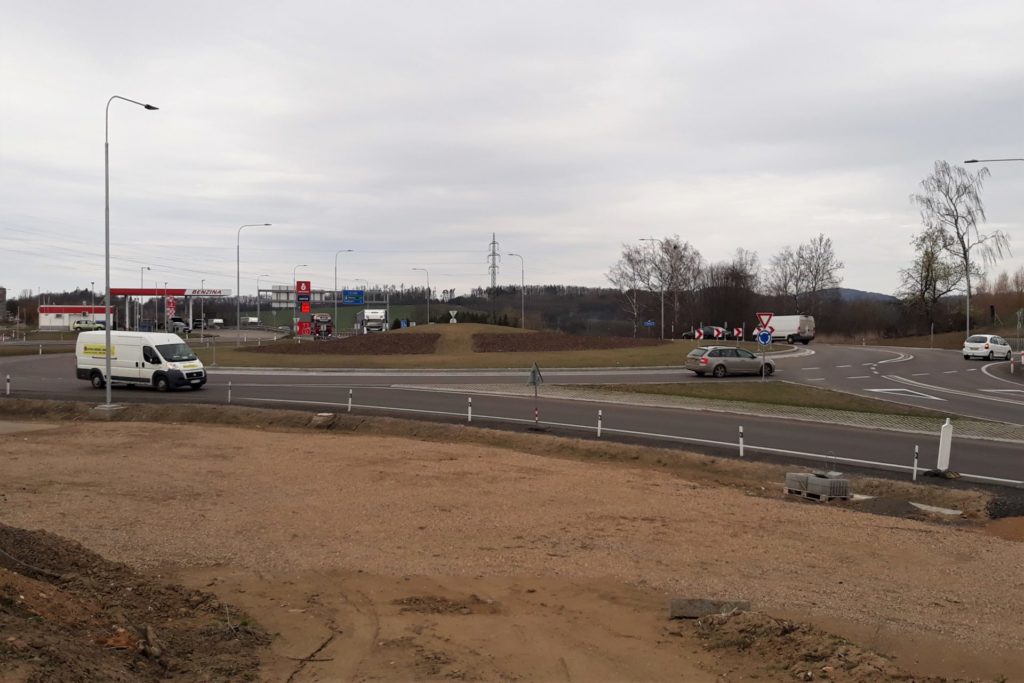 Takto vypadá aktuální stav prací při dokončování napojení silnice I/3 směrem od Tábora na okružní křižovatku.
