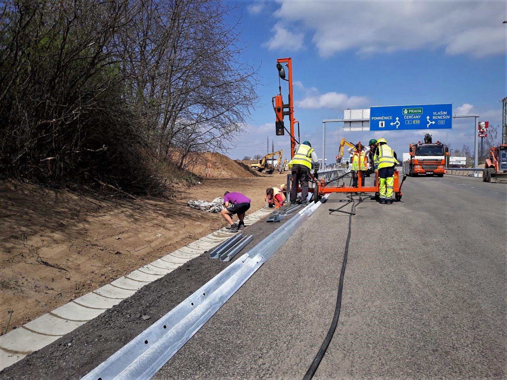 Dokončíme rovněž poslední etapu výstavby nové okružní křižovatky Červené Vršky u Benešova na silnici I/3. Zítra odpoledne proběhne kontrola a jednání se zhotovitelem, a pokud budou splněny všechny požadavky, přistoupí se k demontáži dopravního omezení. V neděli 25.4.2021 by tak již mohla být křižovatka jako celek uvedena do provozu v režimu předčasného užívání stavby. Z hlediska dopravy by to znamenalo vrácení provozu z objízdných tras zpět na silnici I/3.