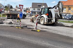 Od 22. března probíhá oprava okružní křižovatky na sil. I/18 a I/66 u Dolejší Obory v Příbrami, kde pracujeme na opravě povrchu, obrubníků, ostrůvků a dle požadavků dopravní policie realizujeme rovněž obnovu vodorovného značení, aby průjezd křižovatkou byl bezpečnější. V pátek jsme přešli na poslední etapu s uzavřením větvě křižovatky do ulice Plzeňské. Po dohodě se zhotovitelem stavby byla o proti původnímu projektu změněna organizace prací, což se projevilo v navýšení počtu etap i změně dopravně inženýrského opatření.