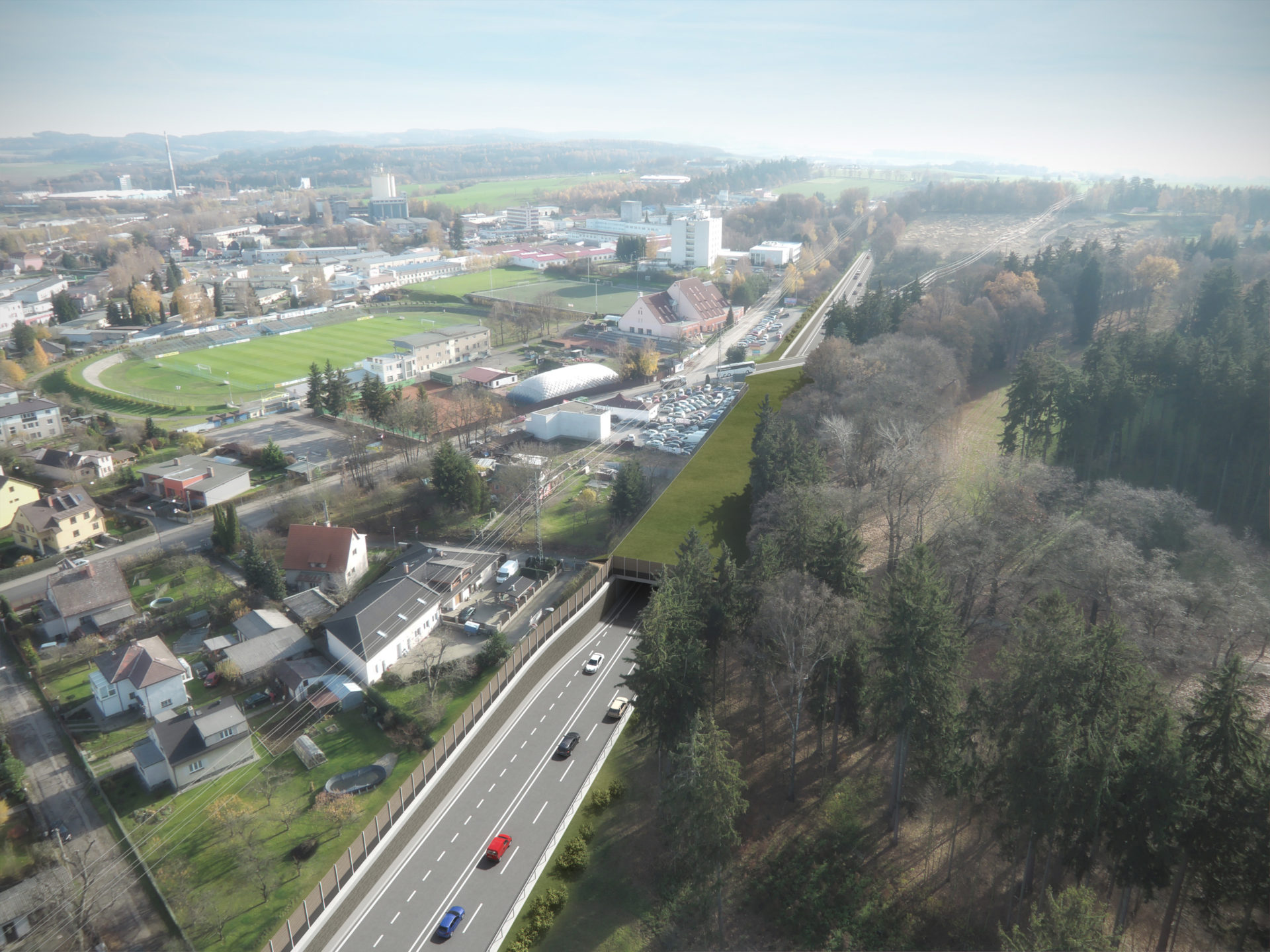 Pokračujeme ve zkapacitnění komunikace I/3 mezi napojením této silnice na D1 u Mirošovic a Benešovem, kde je již upravena na šířkovém uspořádání 2+1. V průběhu posledních 2 let jsme rovněž uvedli u Benešova do provozu 2 nové okružní křižovatky, U Topolu a před měsícem Červené Vršky. Zbývá nám zkapacitnit úsek I/3 podél Benešova, právě mezi těmito křižovatkami, který se stává špuntem v plynulosti dopravy. V rámci projektu je plánované nejen šířkové uspořádání 2+1 jízdní pruhy ale také zahloubení části komunikace, což umožní formou parkové úpravy propojení Benešova s Konopišťským parkem.