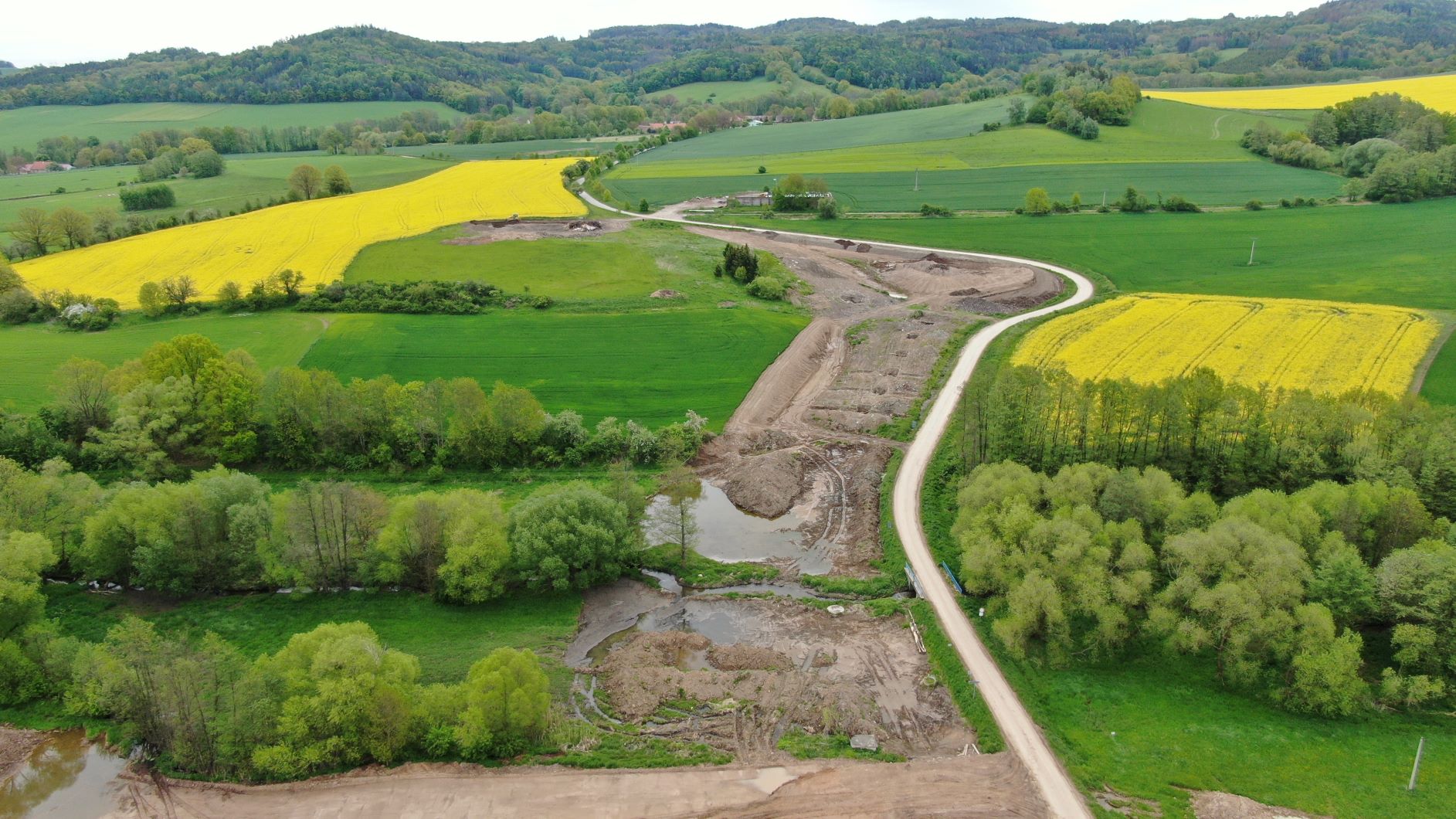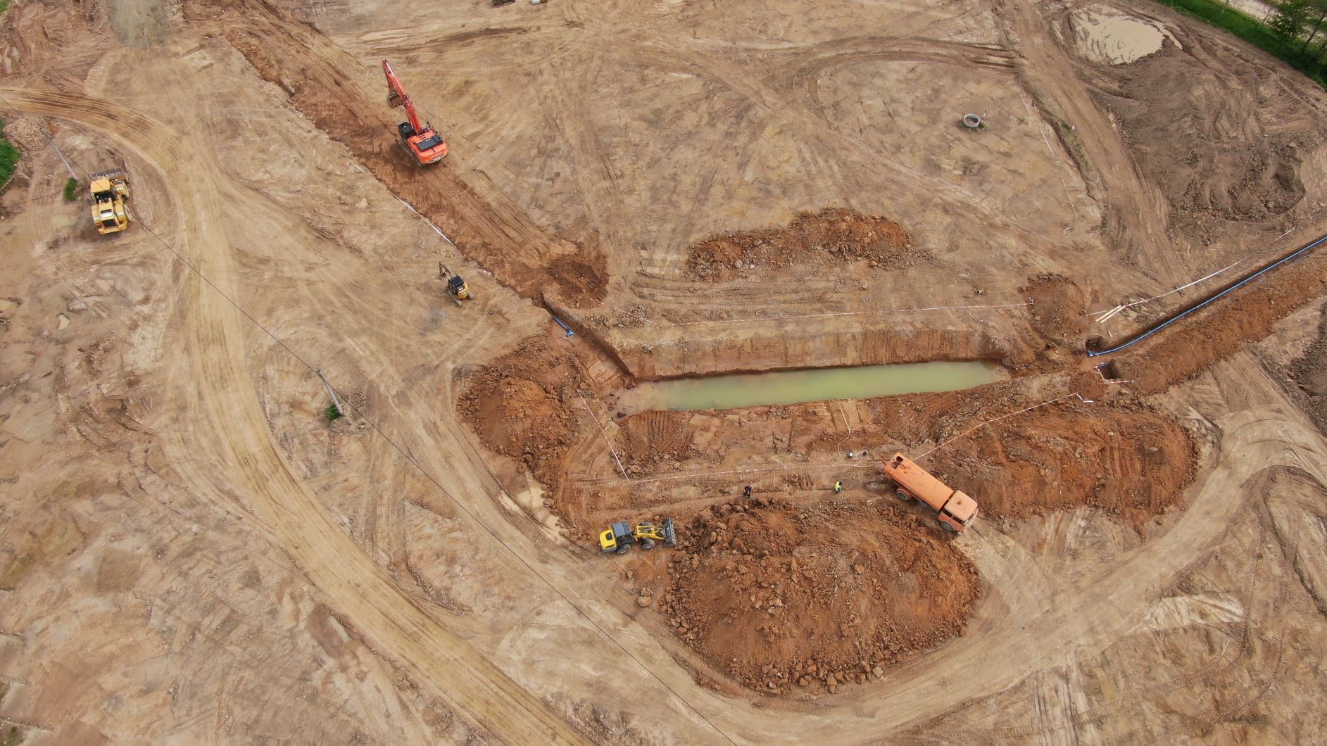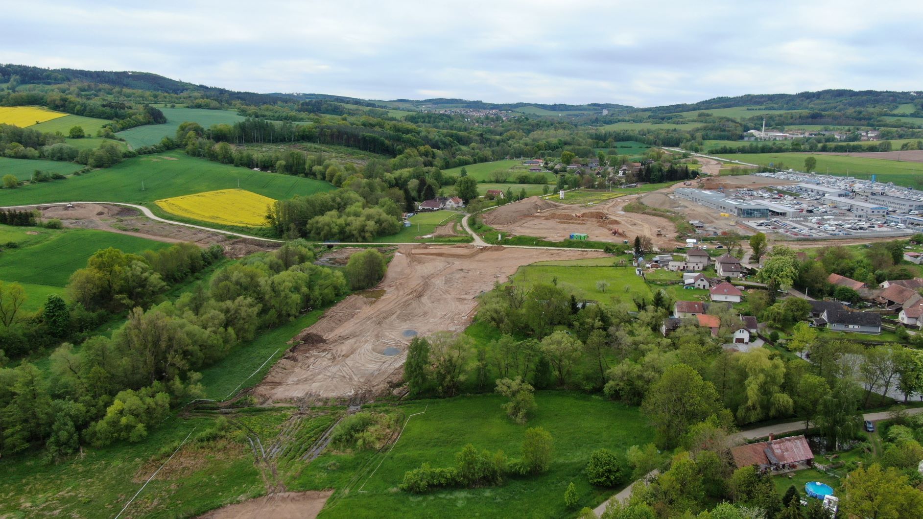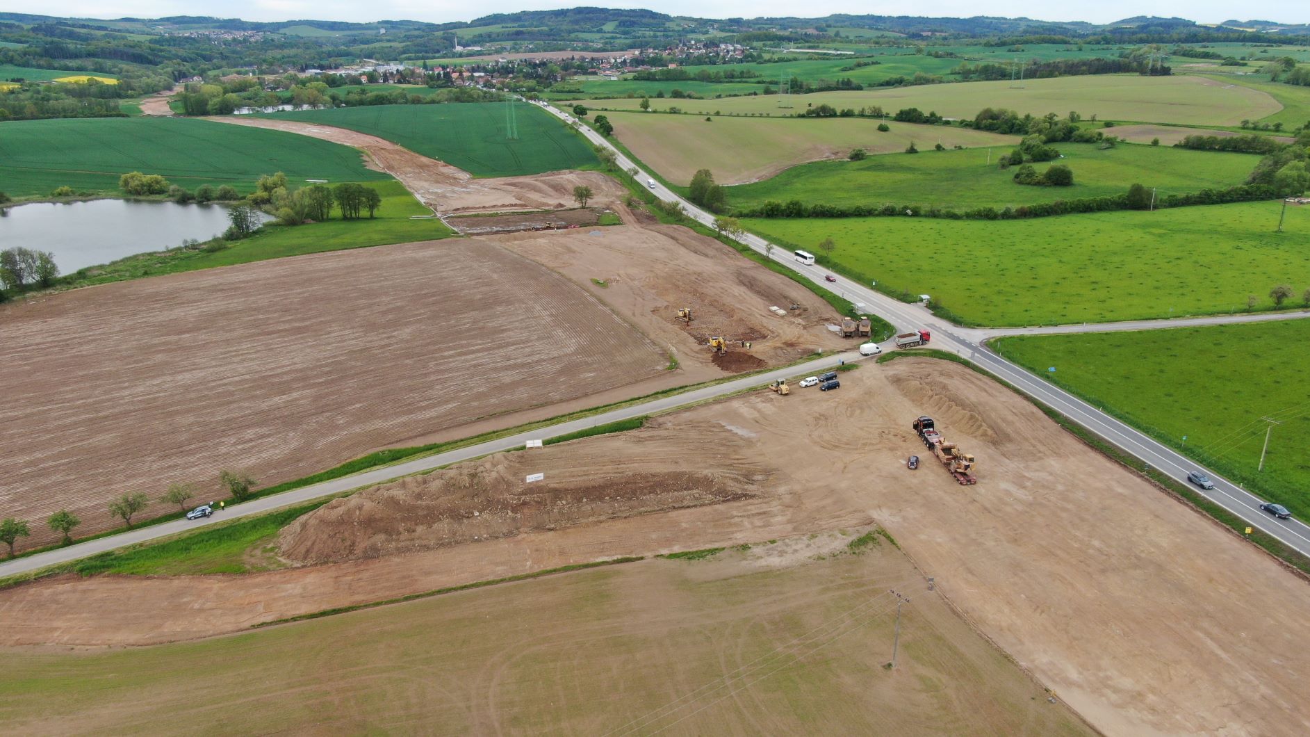 I v 2. měsíci výstavby obchvatu Olbramovic probíhají nadále především zemní práce. Na těch se promítlo zejména deštivé počasí a tak se občas výkopy proměnily v plnohodnotné jezírka či bazény. Nicméně nadále postupujeme v souladu se schváleným harmonogramem. V hlavní trase provádíme sanaci kritických míst v blízkosti vodotečí pomocí geotextílie a lomového kamene a současně probíhá zlepšování podloží pod všemi náspy pomocí hydraulického pojiva. Dále probíhají přípravné práce na úpravě vodotečí a přeložce všech vodovodů. Zahájili jsme rovněž odtěžování zářezu na začátku obchvatu směrem od Benešova. Vytěžený materiál je stavbou přemísťován do prvních vrstev budoucího náspu. Zahájili jsme již také práce na výstavbě 2 mostů. Na mostě na silnici III/00336 probíhá vrtání pilot a práce na jeho založení. Přípravné práce pro vrtání pilot jsou v běhu u mostu přes Konopišťský potok. Výkopové práce proběhly i u rámových mostů. Zde bude provedena sanace základové spáry a následně založení.