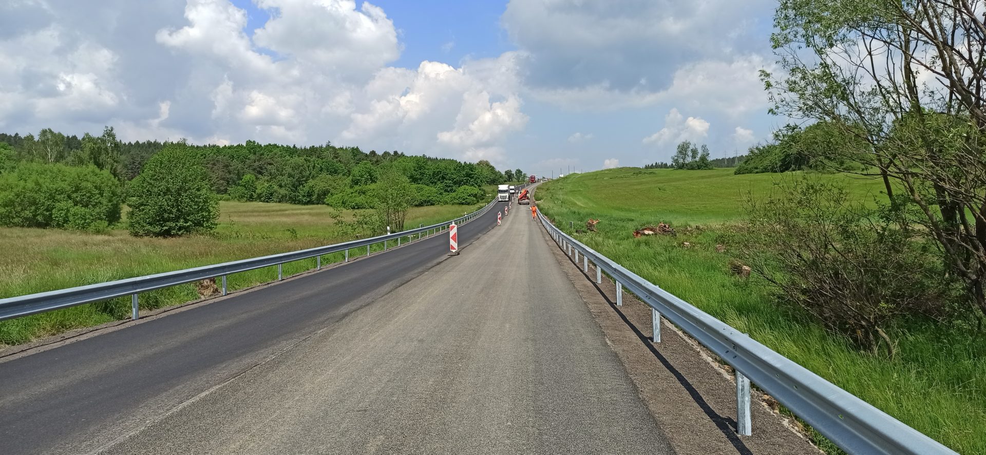 Předstih proti plánu nám tento pátek 2.7.2021 také dovoluje přerušit pokládku konstrukčních vrstev vozovky. Po položení ložné vrstvy a jejím vytvrdnutí odstraníme v aktuálně opravovaném úseku dopravní omezení v podobě kyvadlově řízené dopravy a umožníme zde provoz oběma jízdními pruhy (1+1) v režimu průjezdu stavbou s omezením max. povolené rychlosti. Předpokládáme, že nejpozději od pátku 2.7.2021 17:00 hod. do úterý 6.7. 2021 06:00 zde řidiči projedou bez čekání na semaforech, což jak pevně věříme přispěje k hladkému odjezdu na prodloužený víkend. V úterý v ranních hodinách pak již budeme muset zahájit pokládku obrusné vrstvy vozovky, abychom mohli dodržet harmonogram a opravovaný úsek uvedli do provozu ve slíbeném předstihu.