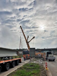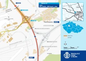 Rekonstrukce mostu na dálnici D0 přes Chlumeckou ulici v Praze probíhá podle předpokladů. Západní část mostu jsme zbourali začátkem května a o víkendu 26.-27.6. 2021 jsme již na nové opěry a pilíře osadili 18 kusů prefabrikovaných nosníků. Nyní budeme pokračovat na dokončení dolní stavby a v další výstavbě hlavní nosné konstrukce této části mostu. V nadcházejícím období přijde na řadu armování a betonáž spřažené desky nosné konstrukce. Po jejím vybetonování ji o několik milimetrů sneseme a položíme na již osazená ložiska. Provedeme zásyp pilíře P2 a zasyp za opěrami mostu a vybetonujeme křídla a závěrné zdi.