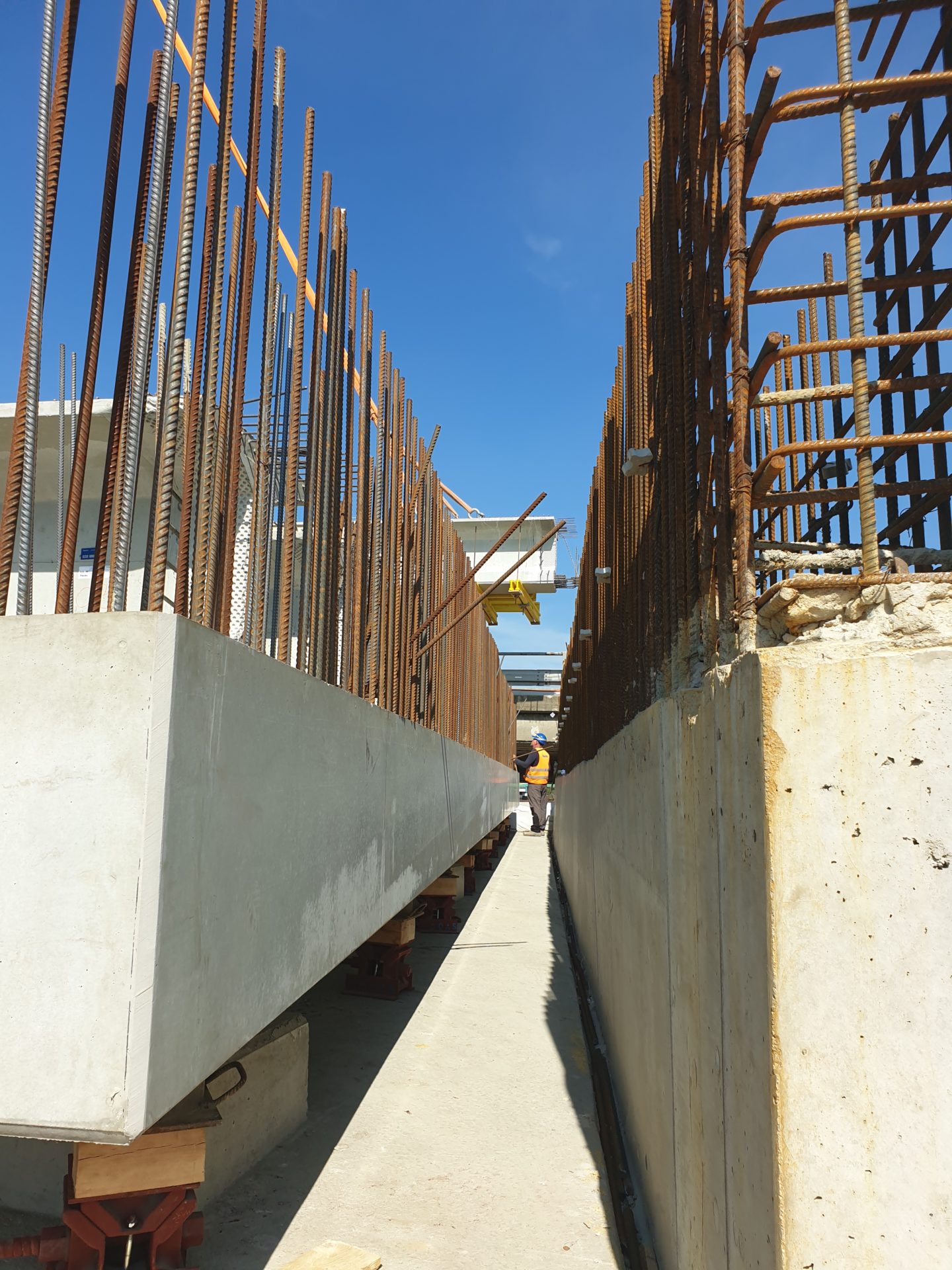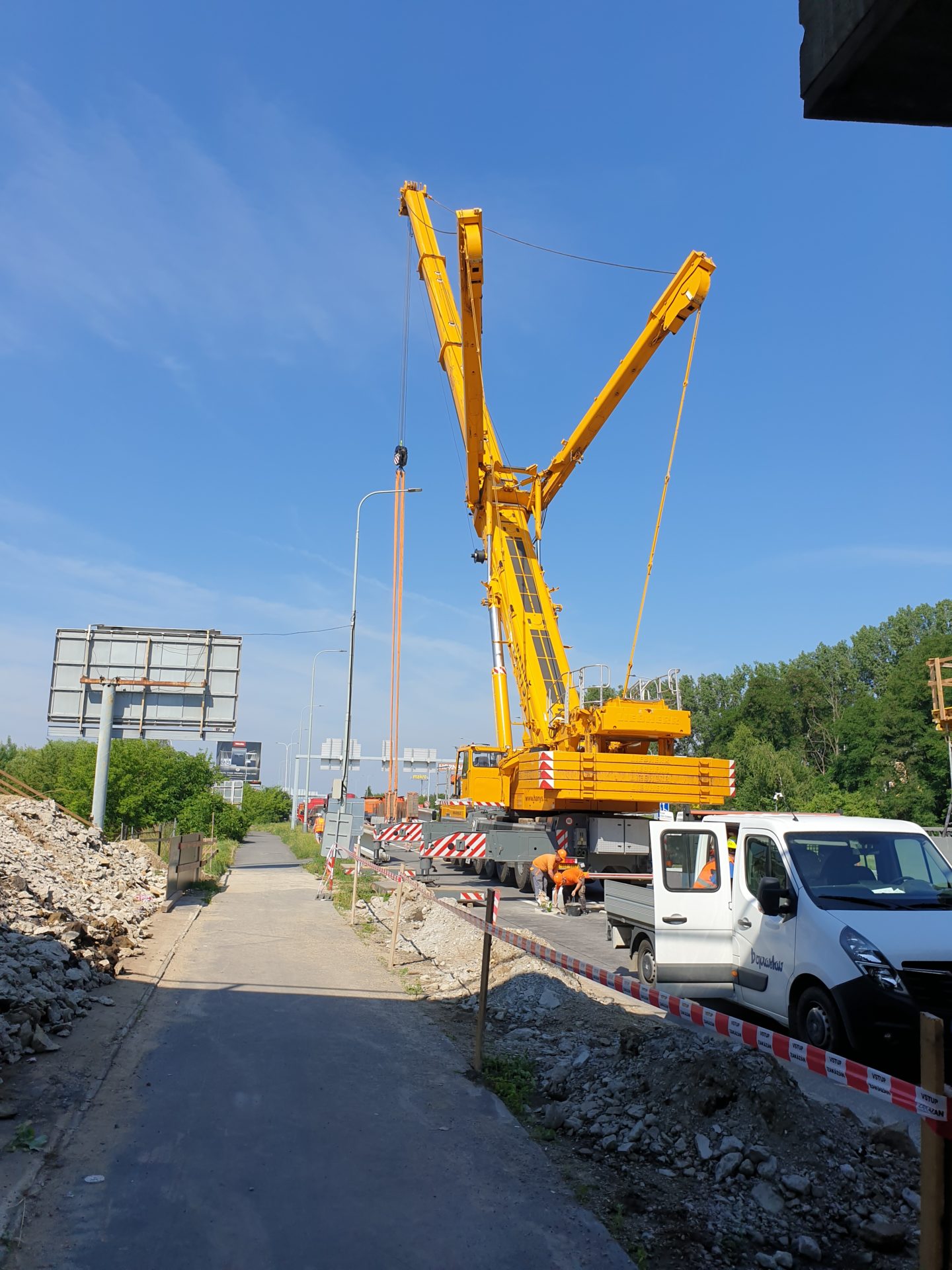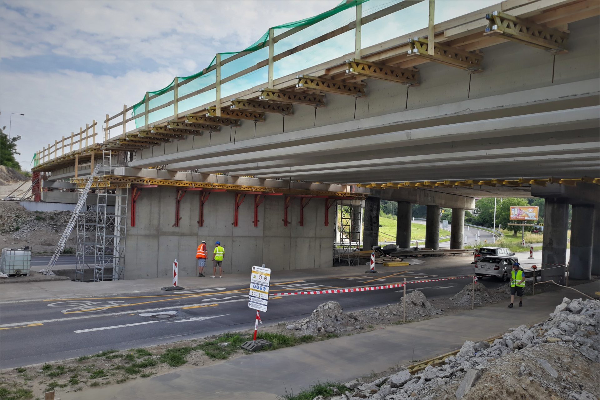 Rekonstrukce mostu na dálnici D0 přes Chlumeckou ulici v Praze probíhá podle předpokladů. Západní část mostu jsme zbourali začátkem května a o víkendu 26.-27.6. 2021 jsme již na nové opěry a pilíře osadili 18 kusů prefabrikovaných nosníků. Nyní budeme pokračovat na dokončení dolní stavby a v další výstavbě hlavní nosné konstrukce této části mostu. V nadcházejícím období přijde na řadu armování a betonáž spřažené desky nosné konstrukce. Po jejím vybetonování ji o několik milimetrů sneseme a položíme na již osazená ložiska. Provedeme zásyp pilíře P2 a zasyp za opěrami mostu a vybetonujeme křídla a závěrné zdi.